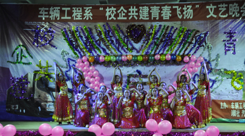 2015年11月10日晚7点半,由车辆工程系团总支学生分会主办,D舞社、书画协会、汽车之友协会承办的“校企共建,青春飞扬”文艺晚会在东校区大学生活动中心举行,车辆工程系师生近1000人观看了演出。