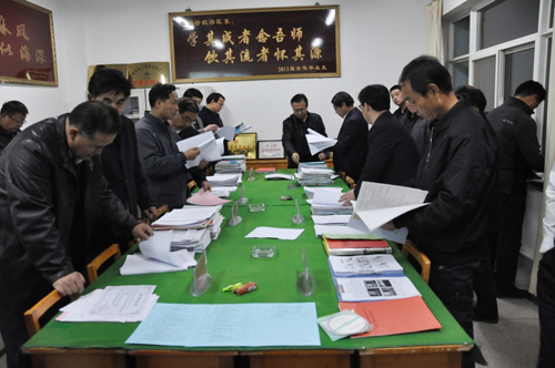 晚上7:30,学院学生工作考评领导小组成员认真查阅了资料,对照考核指标体系,对兽医系学生工作进行了测评打分。