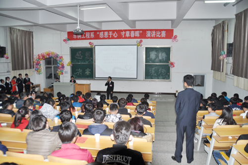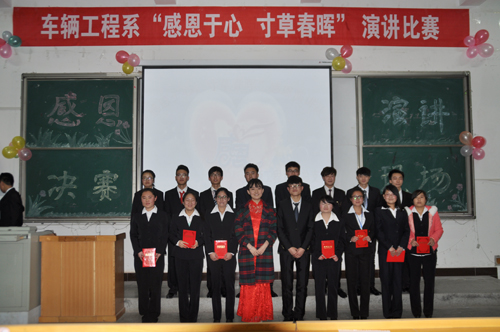 车辆工程系团总支学生分会于2015年11月21日至11月27日举办了以“感恩于心,寸草春晖”为主题的感恩征文比赛和演讲比赛。