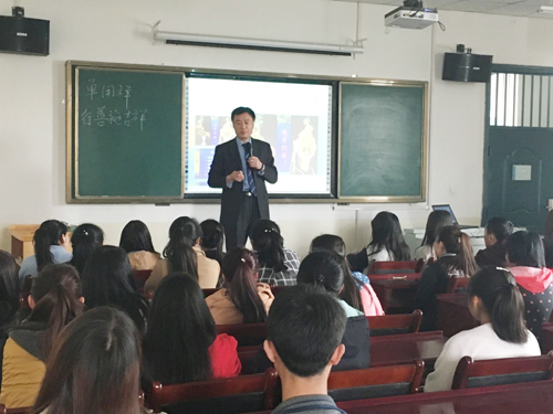 3月19日下午,我院校外专家、山东威龙葡萄酒公司高级顾问单用祥教授在食品科学系多媒体教室给食品生物技术和园艺技术专业15级学生做专题讲座。 单教授结合山东威龙葡萄酒公司的发展历程,用大量实例性图文,深入浅出、精彩地讲解了葡萄酒产业的兴起、发展现状、发展趋势等方面的知识。 (食品科学系 王光耀报道)