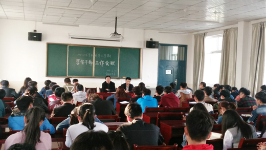 会上,辅导员娄志波就本学期的学生工作计划和工作重点向学生干部做了介绍,辅导员王光耀将团总支的重点工作和当前主要工作做了安排和部署。系党总支书记张鹏程传达了学院学生工作会议上的精神,并对目前该系学生工作中存在的问题进了梳理指导,对本学期开展的工作做出进一步部署,要求各位学生干部协调配合,力保活动顺利开展。同时,他还对学生干部提出了要求,要求学生干部要摆正自己的位置,谦虚谨慎,戒骄戒躁,不要将自己凌驾于其他同学之上,在参与班级管理中要注意方式方法。他还勉励全体学生干部树立服务意识,认真履行职责,无论在学习、工作、生活上都应该是其他同学学习的榜样,能起到模范带头作用,不辜负老师和同学们的期望。