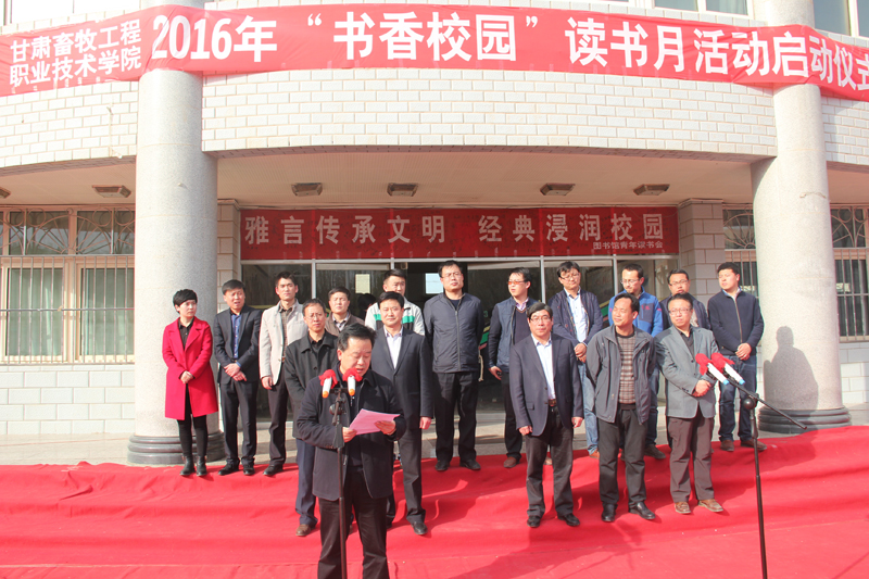 段天青宣读了《共青团甘肃畜牧工程职业技术学院委员会关于开展2016年“书香校园”读书月活动的通知》;祁连文学社成员、兽医系防检14.1班徐子航同学宣读了《书香校园,阅读人生—甘肃畜牧工程职业技术学院“书香校园”读书月系列活动的倡议书》;张进隆介绍了“超星”数字移动图书馆入住学院的基本情况,简要阐述了使用方法、所需终端设备以及利用“超星”数字图书馆进行文献检索、图书下载等基本操作流程。