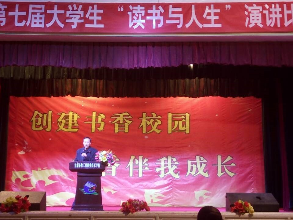 4月20日晚19:30,甘肃畜牧工程职业技术学院第七届大学生“读书与人生”演讲比赛决赛在西校区大学生活动中心举行。本次比赛以“创建书香校园,书香伴我成长”为主题。经各系部初赛选拔的18位选手参加决赛。学生工作部部长段天青及各系团总支书记出席了本次活动。600余名同学观看了比赛。
