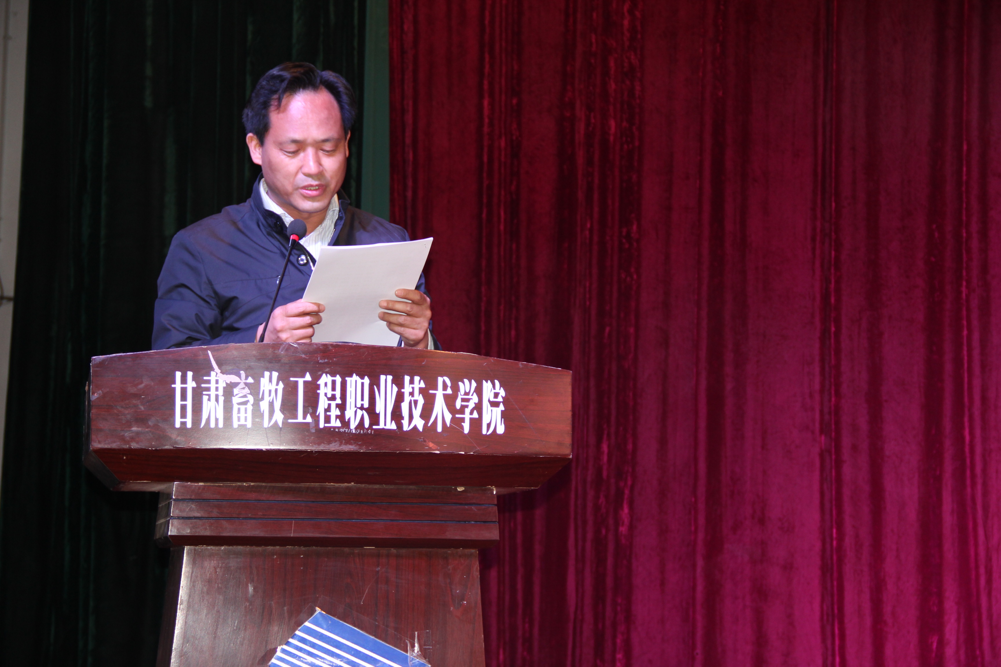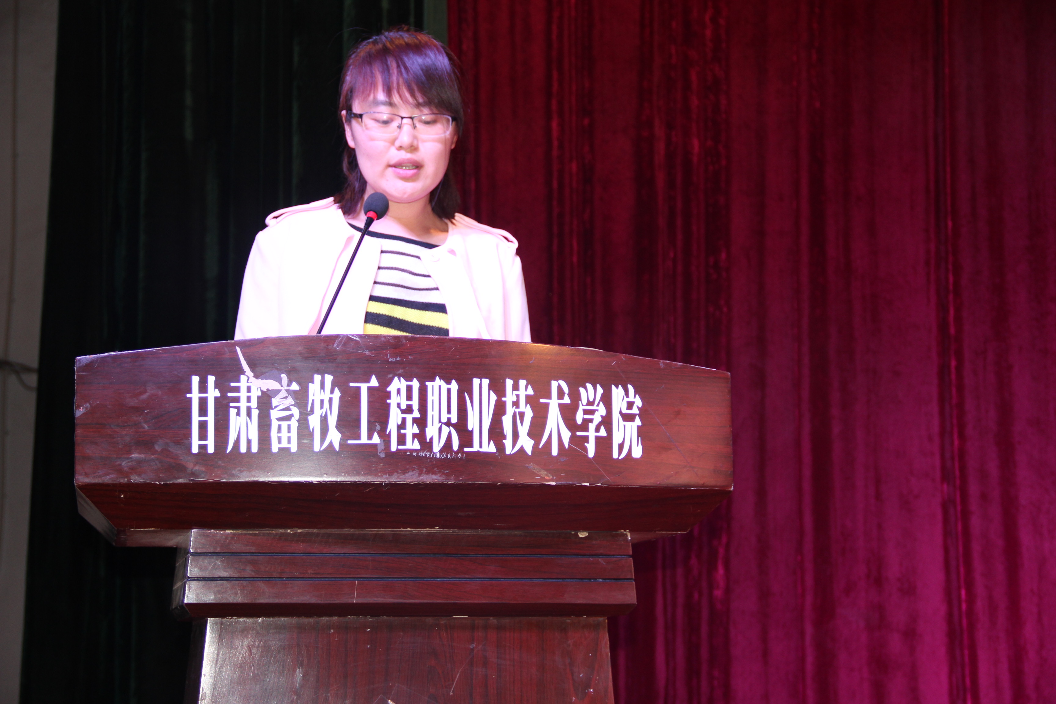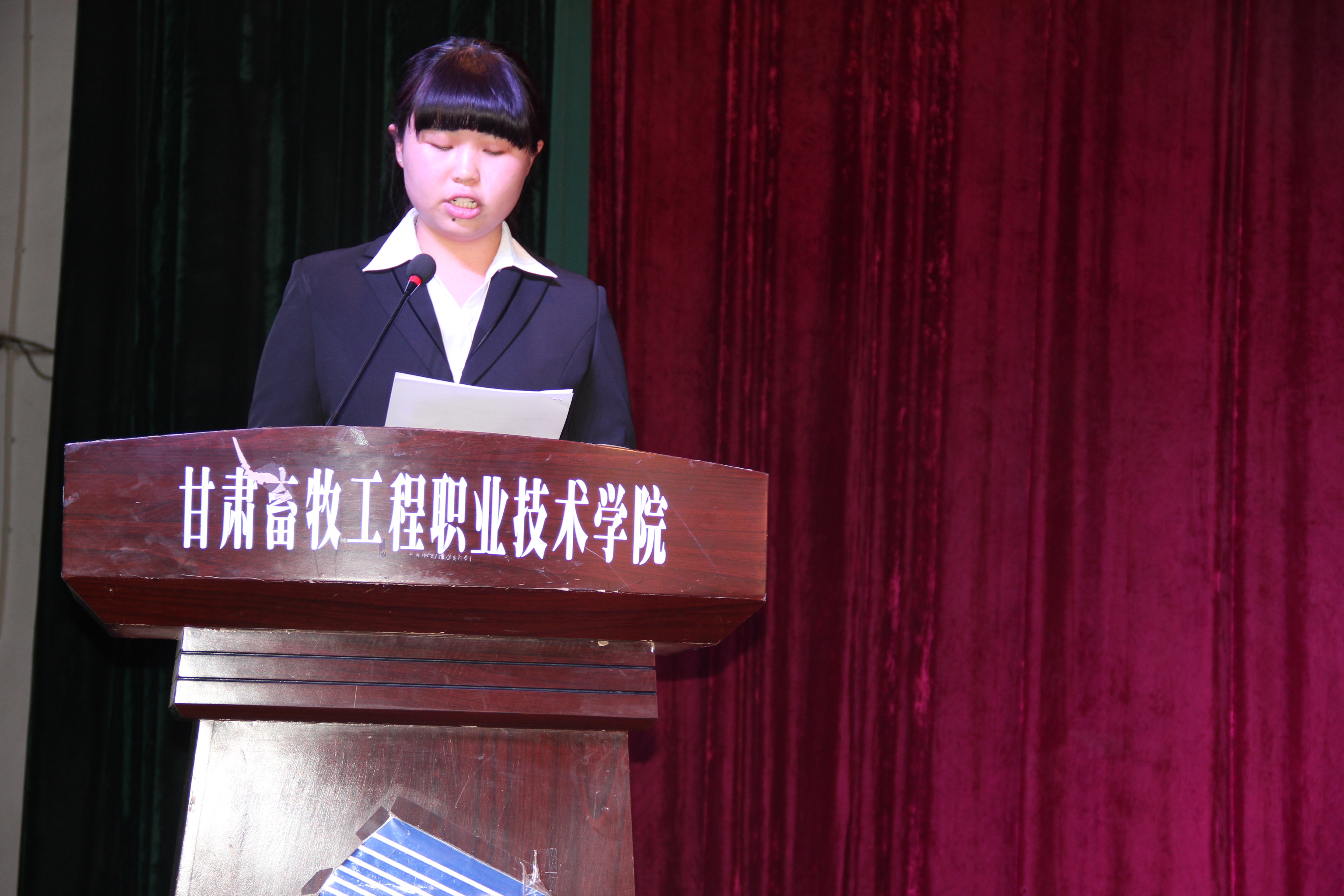 段天青宣读了共青团甘肃畜牧工程职业技术学院委员会《关于发展马雯等364名新团员的决定》。参会领导为新团员代表在主席台佩戴了团徽。在兽医系防检14.1班徐子航同学的领誓下,全体新团员面对鲜红团旗庄严宣誓。青年教师钟倩同志代表全院师生发言。食品科学系食检15.2班马雯同学代表2016年度新发展团员发言。