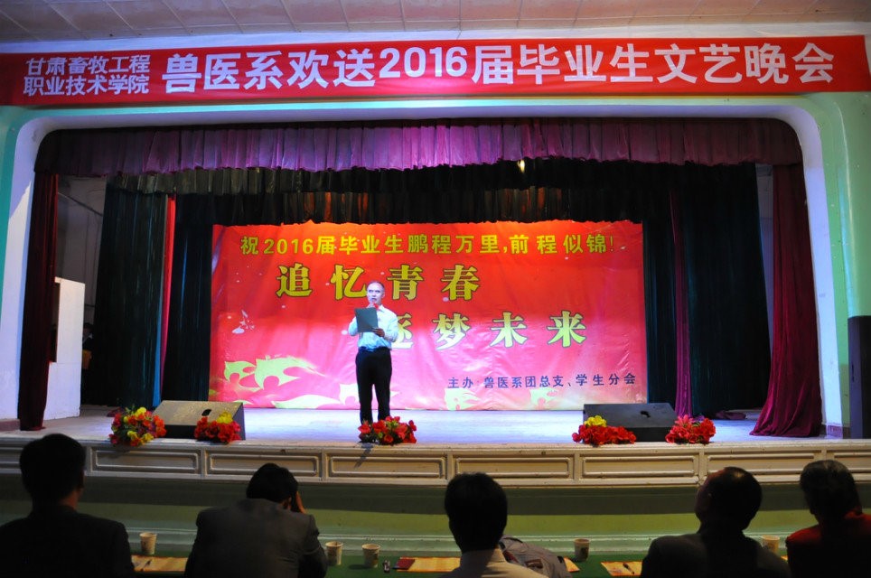 晚会表演结束后兽医系党总支书记王学明致辞,向即将走上工作岗位的2013级同学表达了诚挚关怀和祝福。