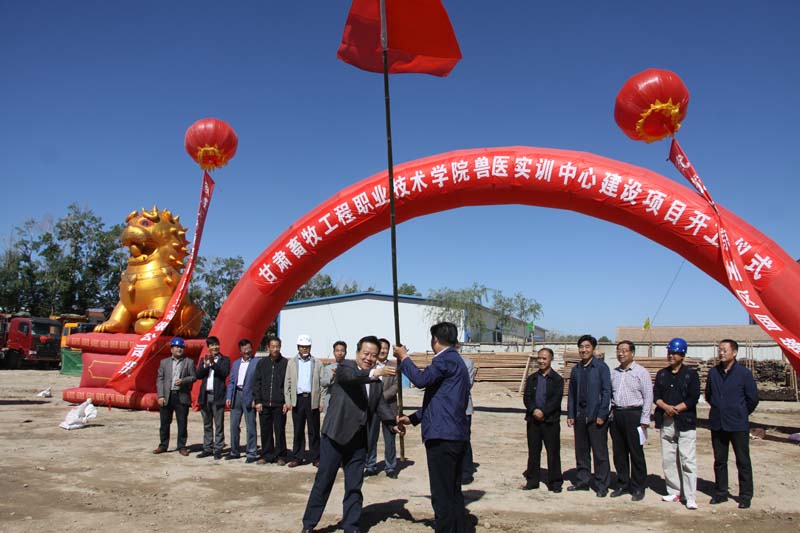 施工单位甘肃金程建筑工程有限公司和甘肃陇原监理工程公司负责人代表先后进行了表态发言。之后,杨孝列为施工单位授旗并宣布兽医实训中心项目正式开工。