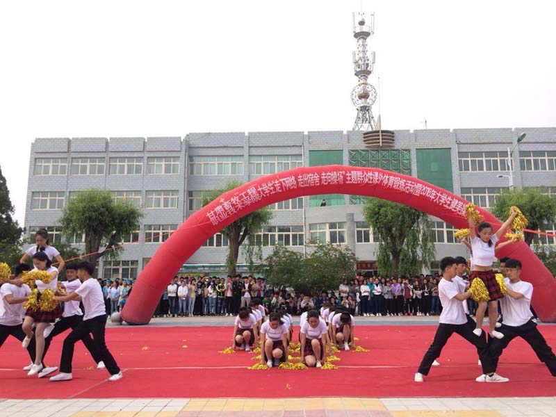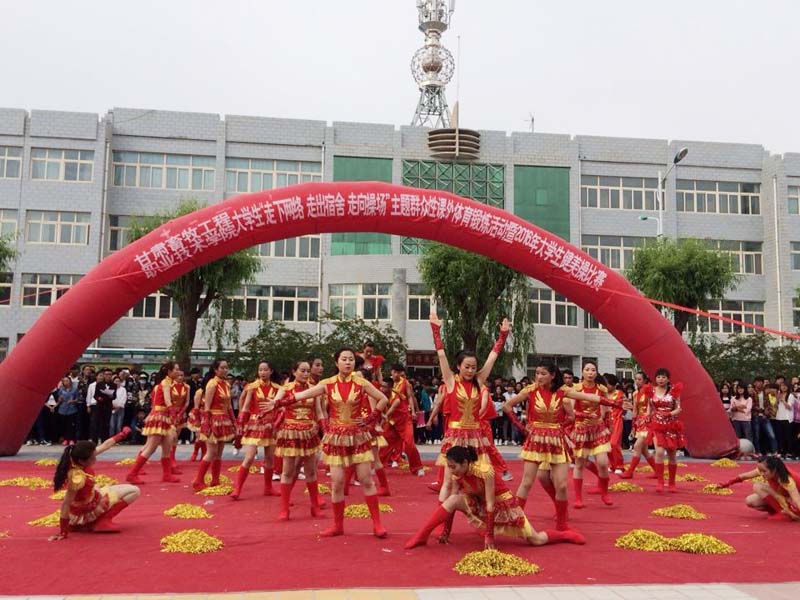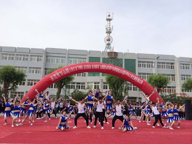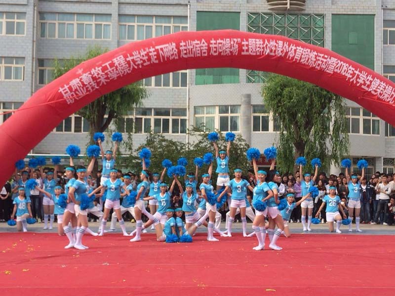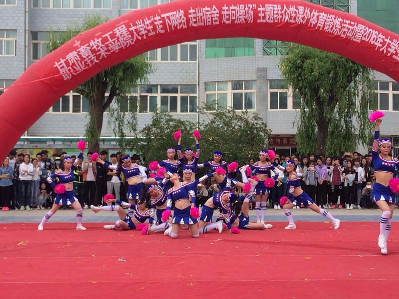 5月26日下午17:00,甘肃畜牧工程职业技术学院大学生“走下网络、走出宿舍、走向操场”主题群众性课外体育锻炼活动暨2016年大学生健美操比赛在西校区图书馆前小广场隆重举行。经过各系及学生社团初选的10个团队近500名同学参加了比赛。副院长张延贵、学生工作部部长段天青、各系党总支书记、各系团总支书记参加了活动,1000余名师生观看了比赛。