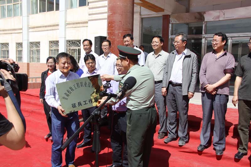 武威市征兵工作领导小组副组长、武威军分区司令员万发忠和武威市市委常委、副市长李成日共同为学院“大学生征兵工作站”授牌,学院副院长王祎才接牌。