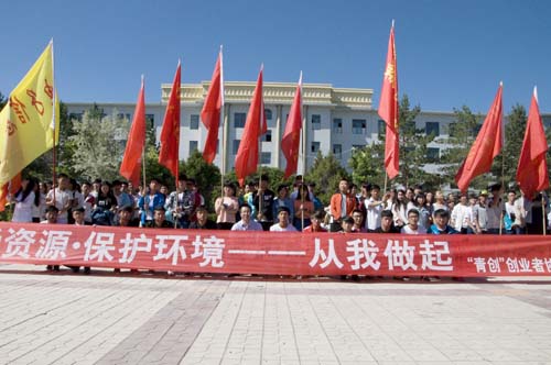 为响应国家环境保护、绿色环保的号召,增强环境保护意识,倡导同学们在日常生活中节能减排,减少污染,节约资源,树立正确的环境价值观和道德风尚。在世界环境保护日来临之际,甘肃畜牧工程职业技术学院“青创”创业者协会于6月5日早上9时,在东校区中心花园举办了“珍爱资源,保护环境,从我做起”为主题的校园环境保护宣传、倡议和签名活动。