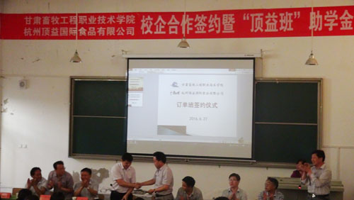 在仪式上,杭州顶益国际食品有限公司人事经理赵亮表示,企业需要大量的应用型技能型人才,希望甘肃畜牧工程职业技术学院和杭州顶益国际食品有限公司在此次成功合作的基础上进一步开展深层次的合作。