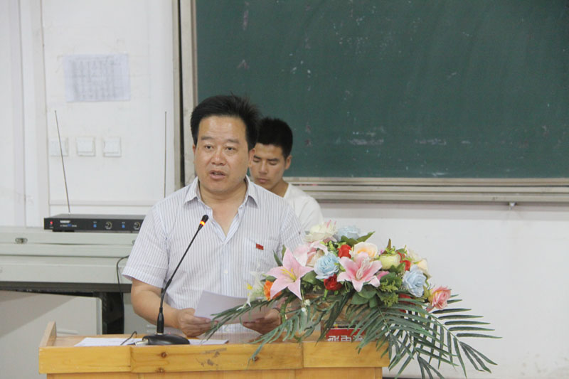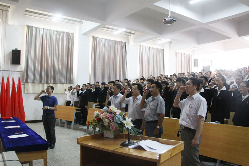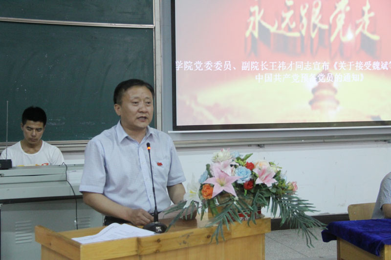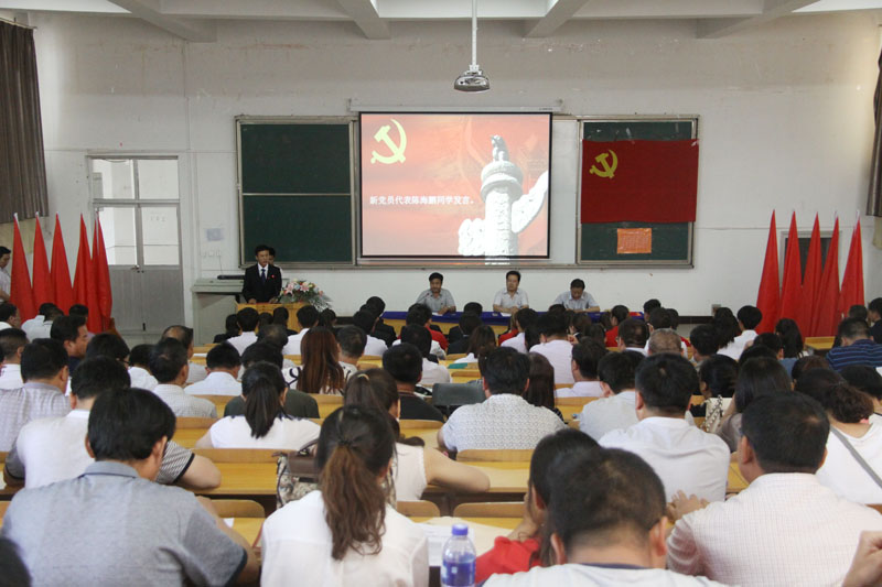 副院长王祎才同志宣读《学院党委关于接受魏斌等52名同志为中国共产党预备党员的通知》;党委宣传部部长贺得飞同志带领新党员郑重宣誓,带领全体党员重温入党誓词。