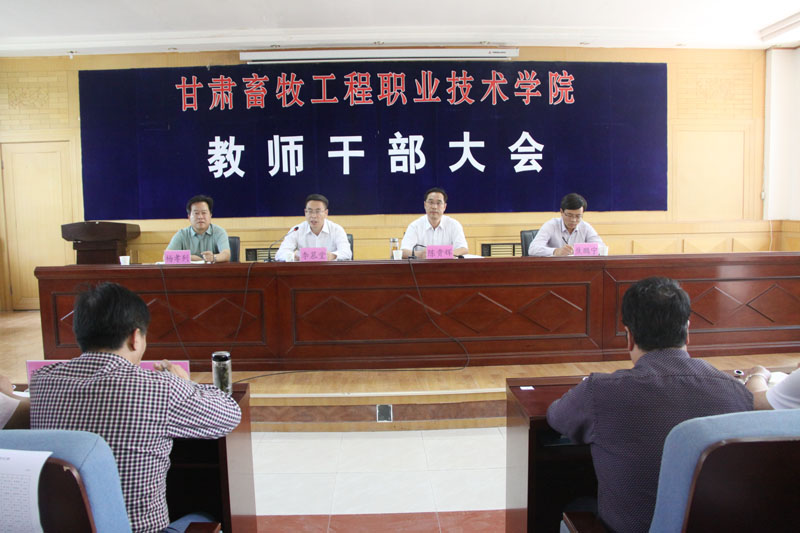 8月28日上午,学院在办公楼一楼会议室召开了教师干部大会。省委组织部干部三处处长陈贵辉、省教育厅人事处副处长焦鹏宁和学院领导出席会议,全体中层以上干部、副高以上职称教师参加会议。会议由主持工作的副院长杨孝列主持。