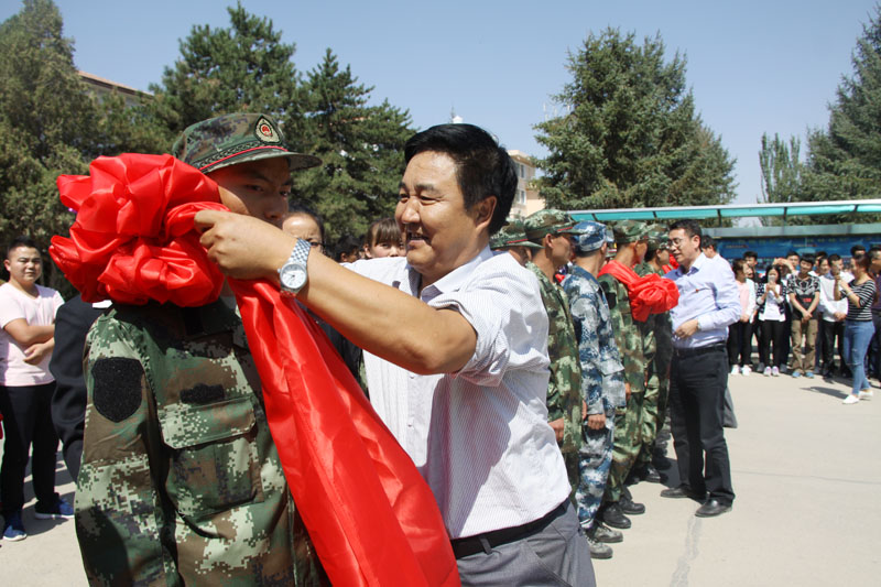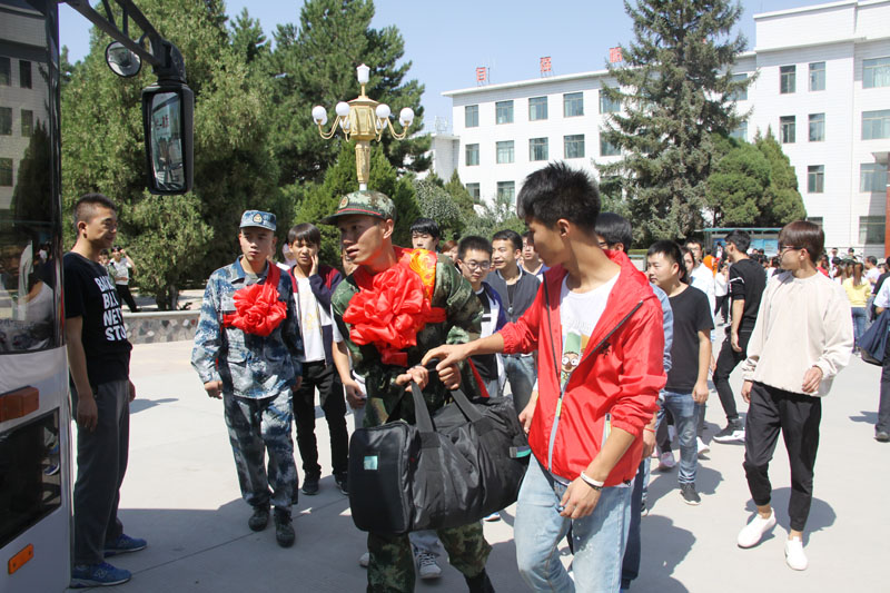 9月14日,甘肃畜牧工程职业技术学院举行2016年应征入伍大学生欢送仪式,欢送今年学院参军的45名大学生。
