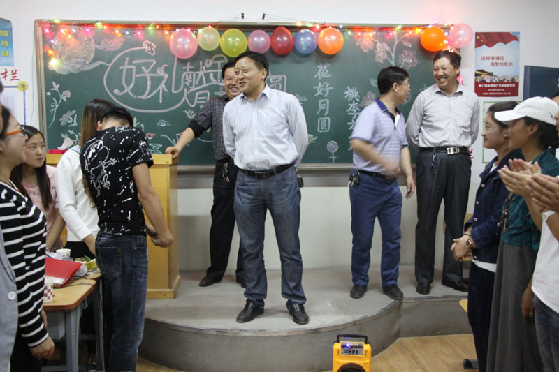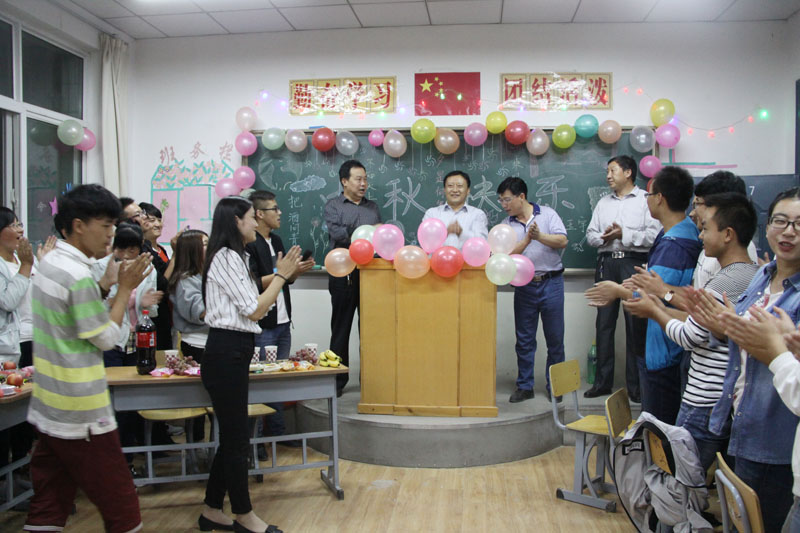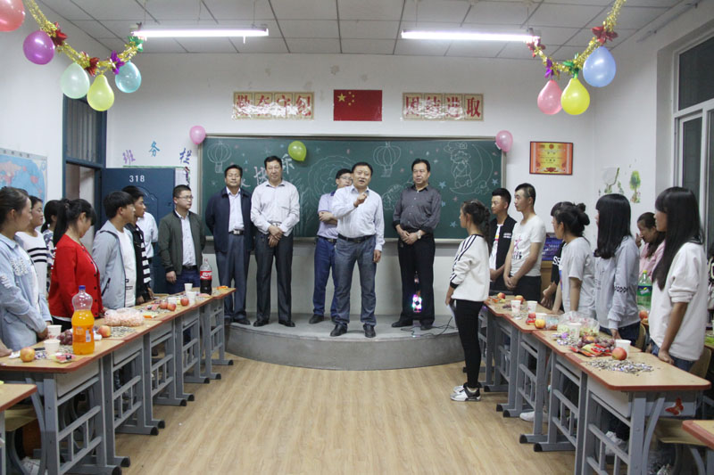 当日晚,学院副院长张延贵、王祎才,学工部部长段天青、团委书记田宗祥、教务处副处长刘根新、学工部副部长王哲毓和各系负责人、党委宣传部工作人员及各系辅导员老师一起到学生班级看望过节的同学们,师生共同欢庆佳节。在2016级新生班级里,学院领导代表学院向同学们表示节日慰问,通过同学向家长致以节日问候,希望同学们尽快适应大学生活,也希望同学们把握来之不易学习机会,学会学习、学会生活,快乐成长。领导们还主动表演节目和同学一起联欢,欢乐的气氛缓解了新同学佳节思亲的念想,共同的欢笑拉近了师生感情,融洽了同学情谊,师生共同度过了又一个难忘的中秋佳节。