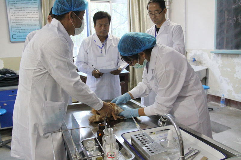 之后,在大会组委会工作人员和裁判的精心组织下,各参赛队队员们参加了理论知识考试和鸡翅静脉采血、鸡心脏采血、鸡体解剖与采样、猪瘟疫苗免疫注射、猪前腔静脉采血等操作技能比赛。9月25日上午10时,所有比赛项目顺利完成。