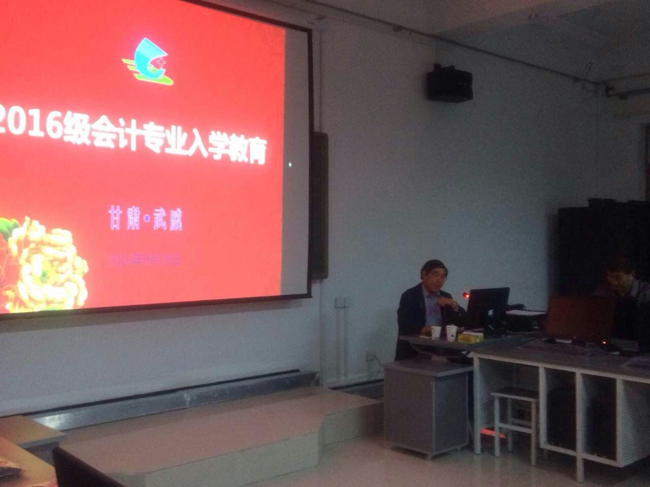 2016年9月29日晚,基础部在多媒体教室开展了基础部会计专业新生入学教育主题活动。基础部党总支书记周凤雄、主任张治俊,各教研室主任、任课教师及教学干事、辅导员、新生班主任与2016级会计专业53名新生共同参加了教育活动。