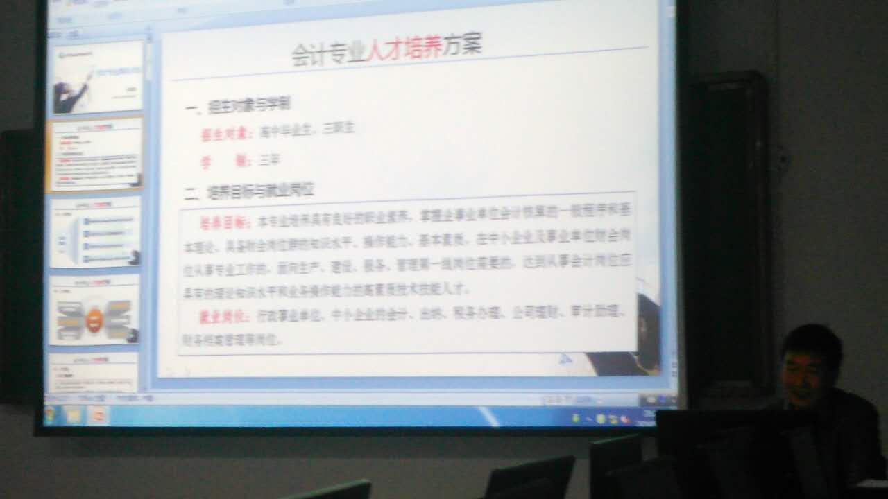 张治俊作专业介绍。从培养目标、就业方向、课程设置、实践技能、资格证书等方面对会计专业人才培养方案作了详细解读。希望同学们尽快适应大学学习生活,为新的人生起点起好步、开好头,并祝愿新生 “你的未来不是梦!你的人生一定会出彩!”。