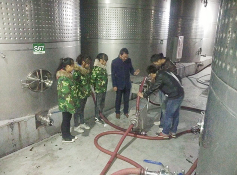 学生们在酒厂主要参加葡萄原料的处理、葡萄压榨汁、酒罐清洗、酒液发酵处理等岗位工作,通过工学交替实习,使学生们对葡萄酒生产工艺有了全面的了解,为以后更好的学好专业理论课程打下了良好的基础。