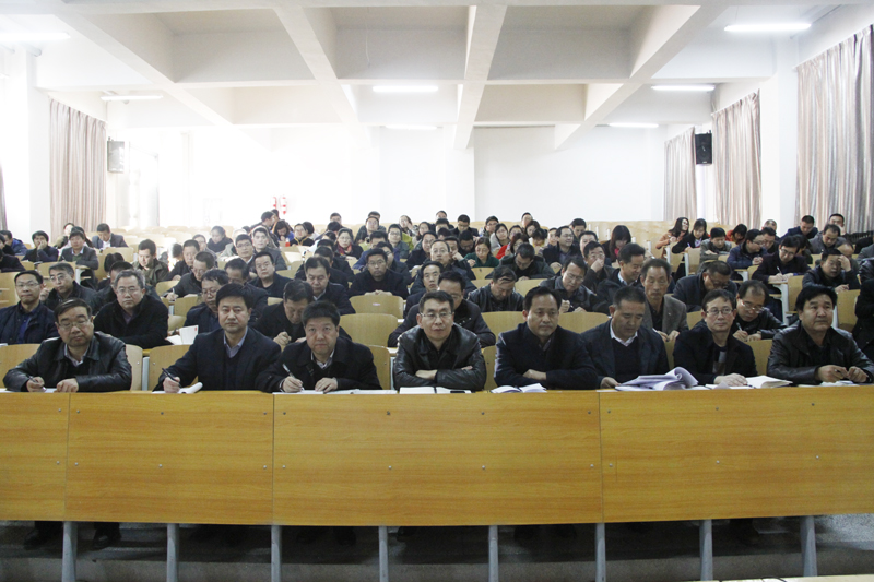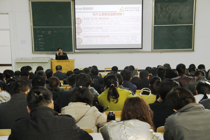 为进一步推动学院“两学一做”学习教育深入开展,规范党内政治生活,落实党要管党从严治党要求,按照院党委安排,11月30日下午,学院在东校区阶梯教室召开全体党员大会,邀请基础部党总支书记、思想政治理论课副教授周凤雄同志作了《关于新形势下党内政治生活的若干准则》宣讲报告。党委书记李慕堂、副院长张延贵,全体中层干部及全体党员参加学习。张延贵主持会议。