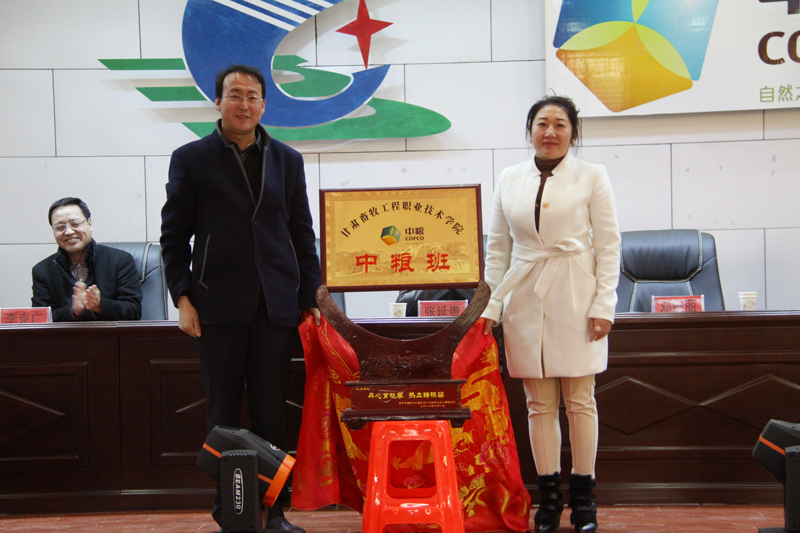 副院长张延贵和邓顺丽经理代表校企双方签署了《“现代学徒制”校企合作协议书》。汪公明和邓顺丽共同为首届现代学徒制“中粮班”揭牌。