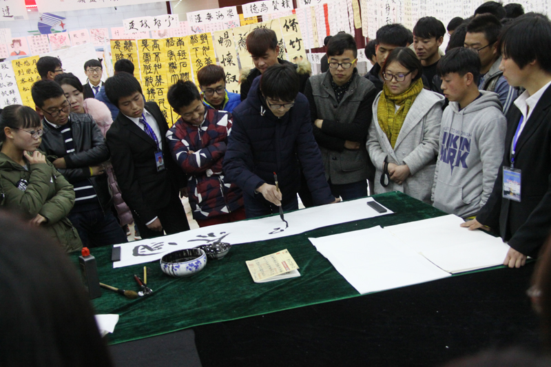 本次书画展共收到书法类作品340件,绘画类作品81件,剪纸和手工艺制作类36件,摄影类作品107件。书法类作品包括篆书、隶书、行书、楷书、草书、硬笔书法,绘画类作品有写意画、色彩画、简笔画、工笔画、速写、半工半意画、素描画。广大书画爱好者寄情书画作品,展示青春风采,抒发爱国情怀。广大师生现场赏析作品,交流学习,陶冶情操。展览会现场,更有书画爱好者现场挥毫泼墨,创作作品,吸引师生纷纷围观,悉心品评。