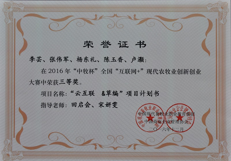我院师生在2016年“中牧杯”全国“互联网+”现代农牧业创新创业大赛中喜获佳绩