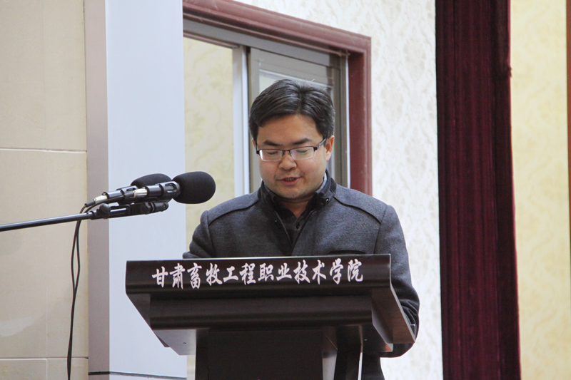 雷鸣宇宣读了2016年甘肃畜牧工程职业技术学院大北农励志奖助学金获奖名单,并为向受助学生颁发奖助学金证书。