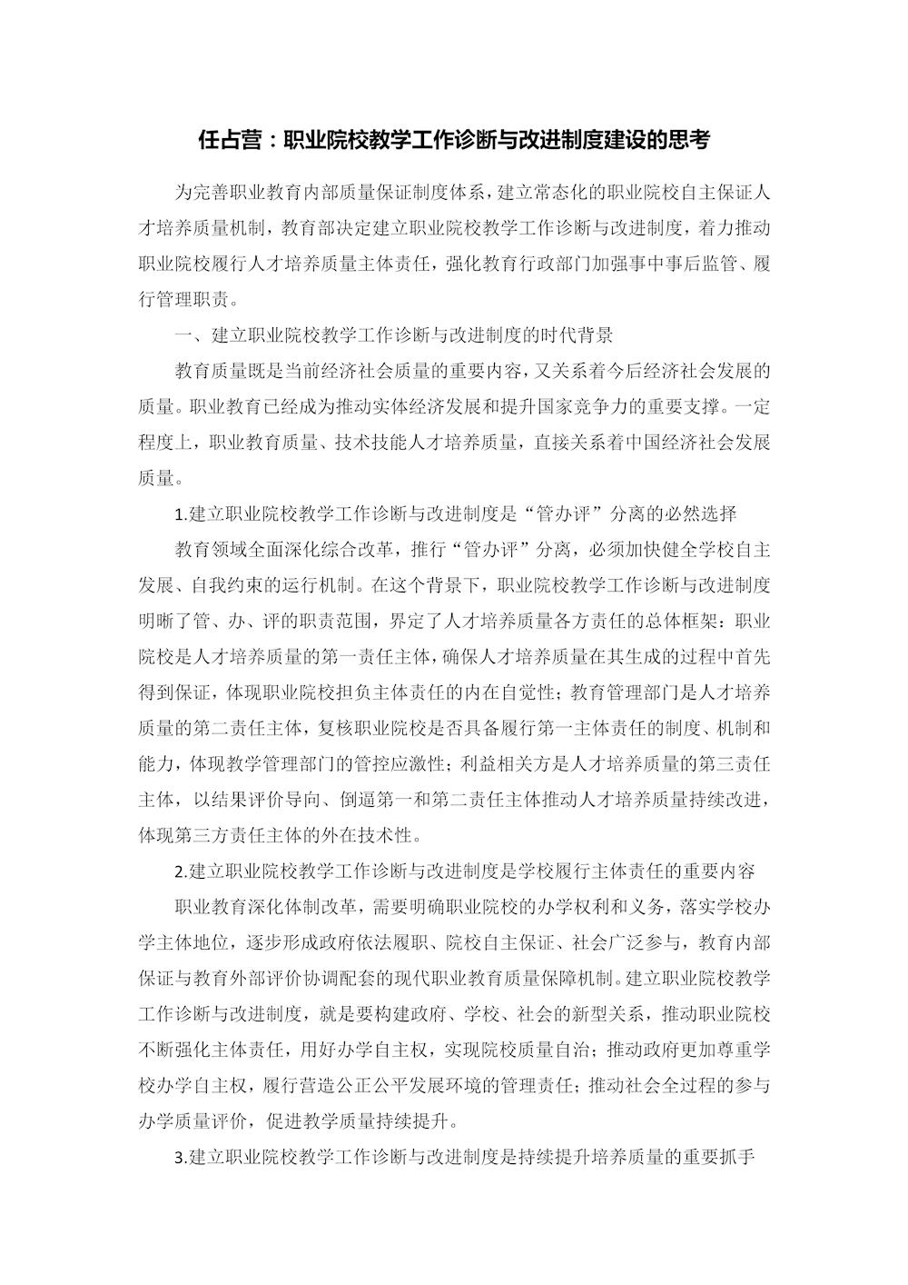 任占营:职业院校教学工作诊断与改进制度建设的思考