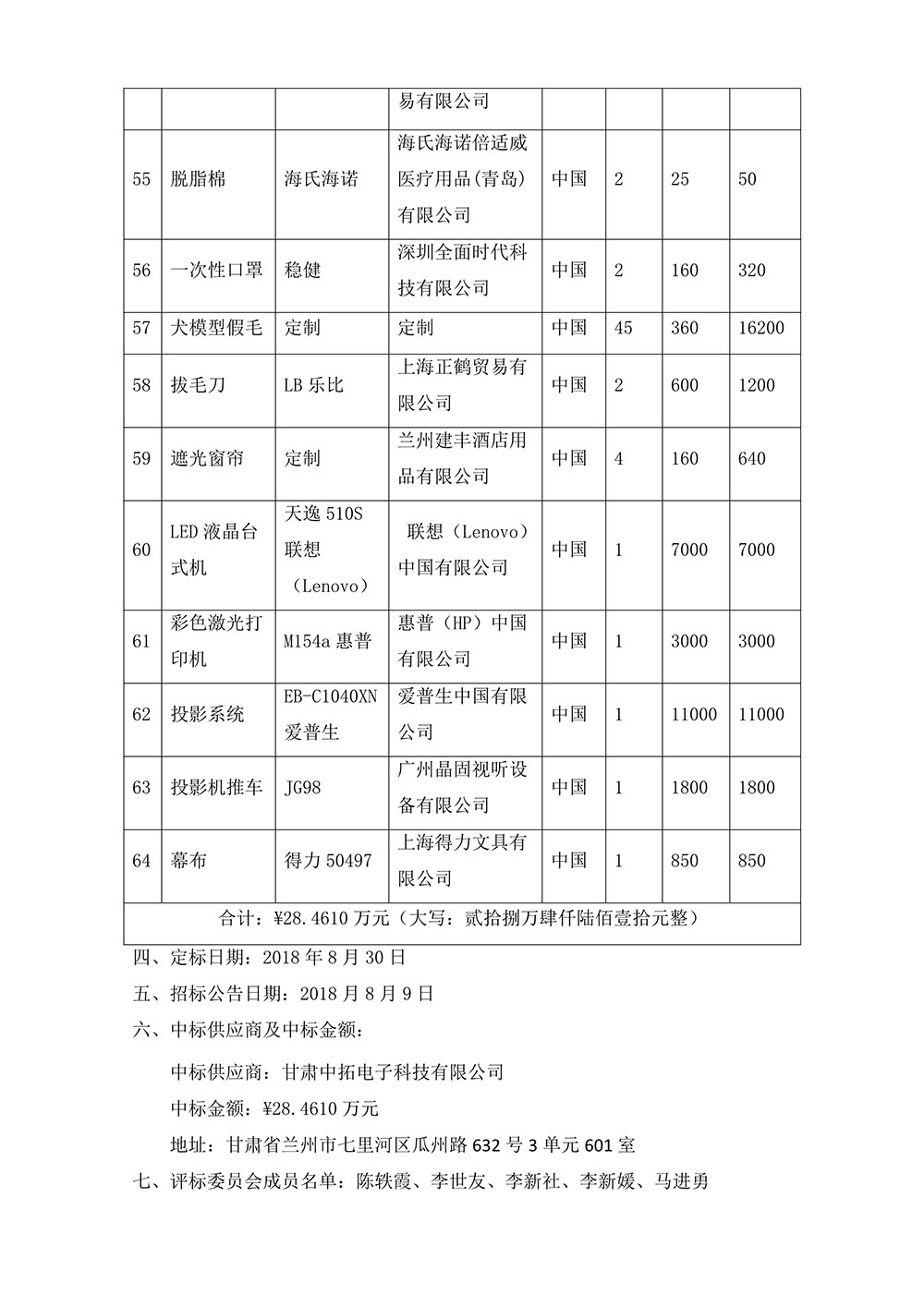 甘肃畜牧工程职业技术学院 2018 年畜牧系实训室补充建设项目