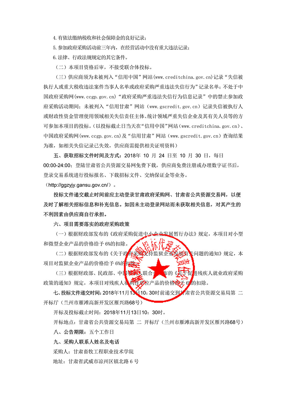 甘肃畜牧工程职业技术学院ERP实训室建设项目公开招标公告