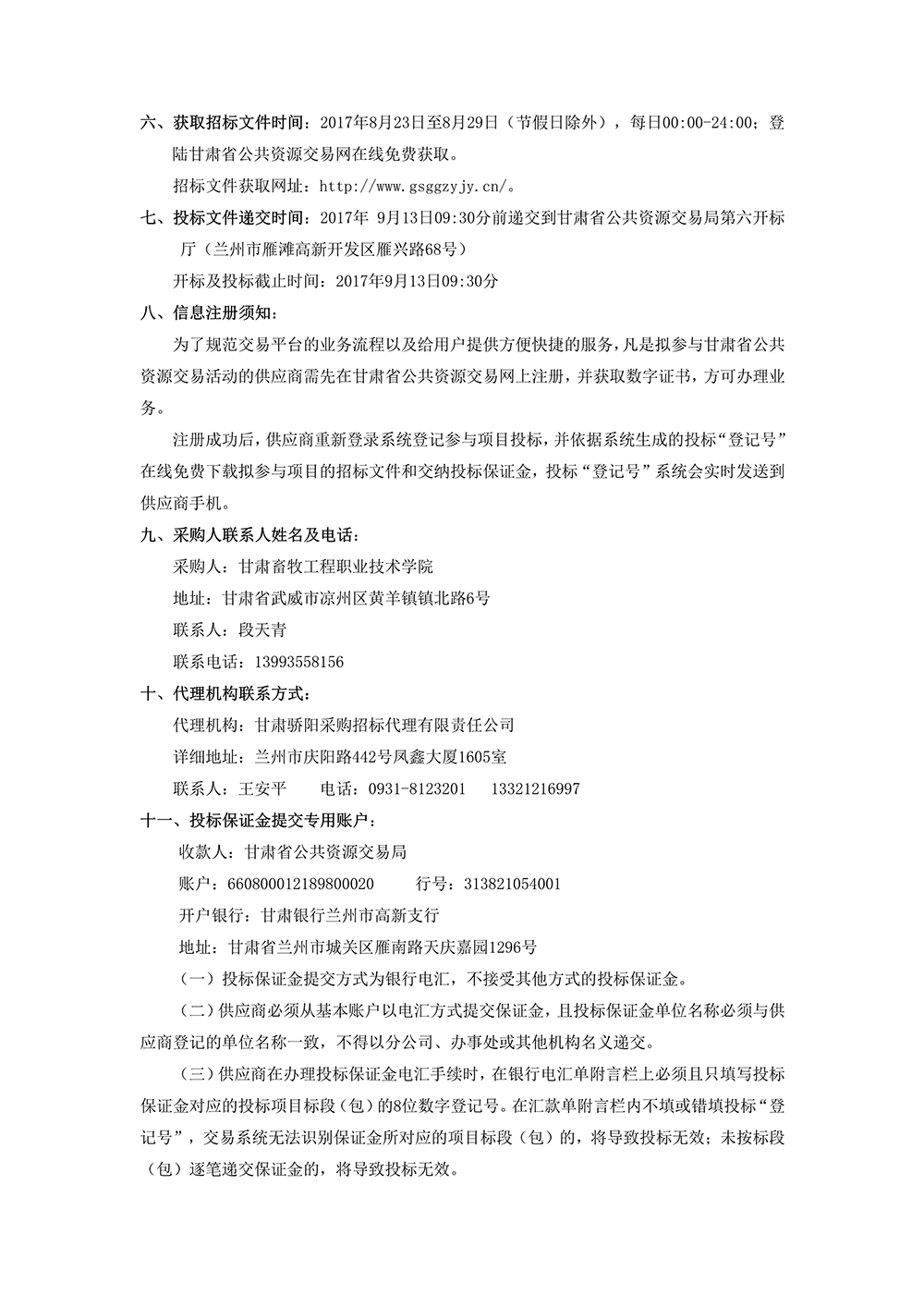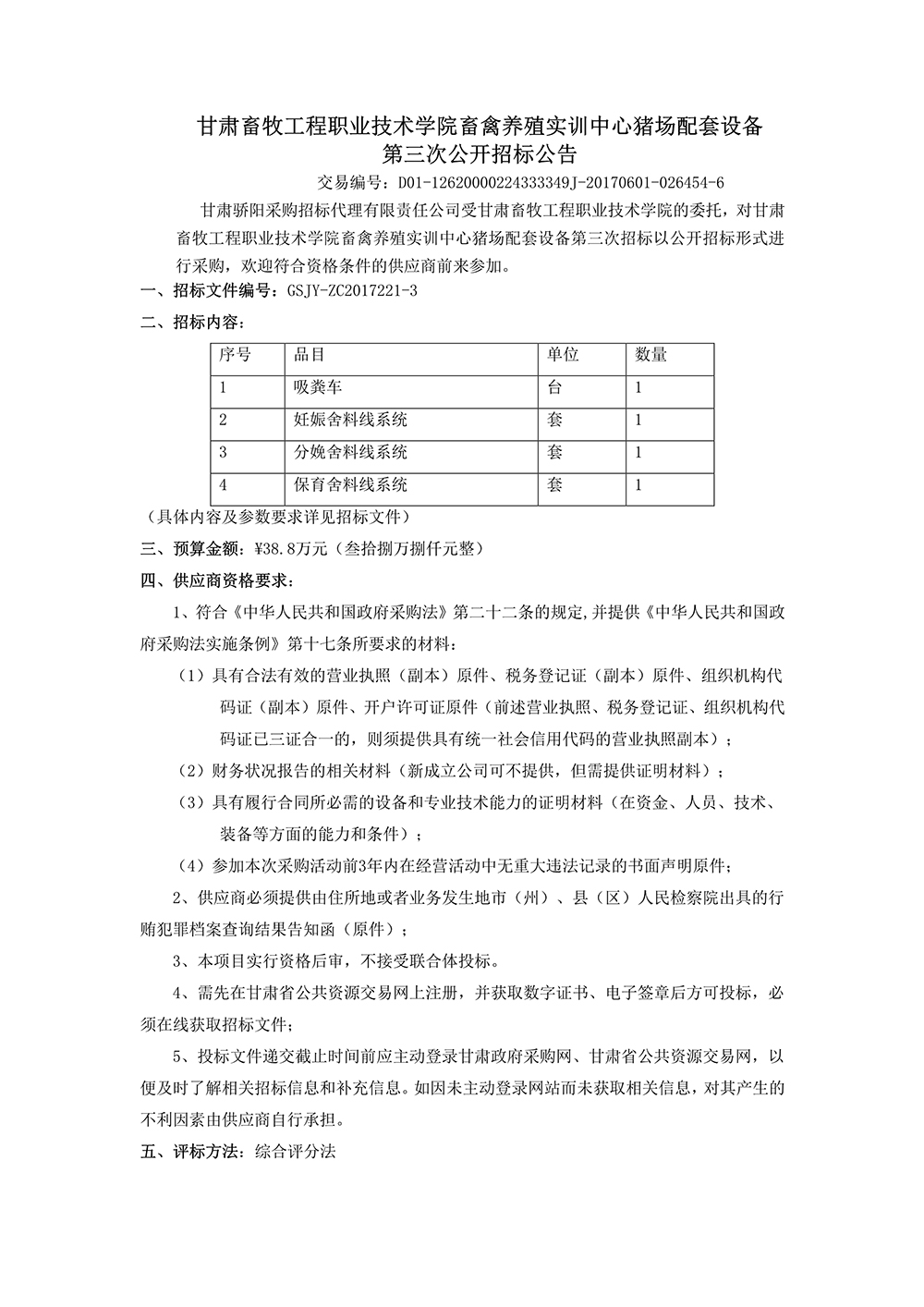 甘肃畜牧工程职业技术学院畜禽养殖实训中心猪场配套设备 第三次公开招标公告 来源:国资基建处 发布时间:2018-11-19 09:44:00 浏览次数:次 【字体:小 大】 分享到: 【打印正文】 相关信息