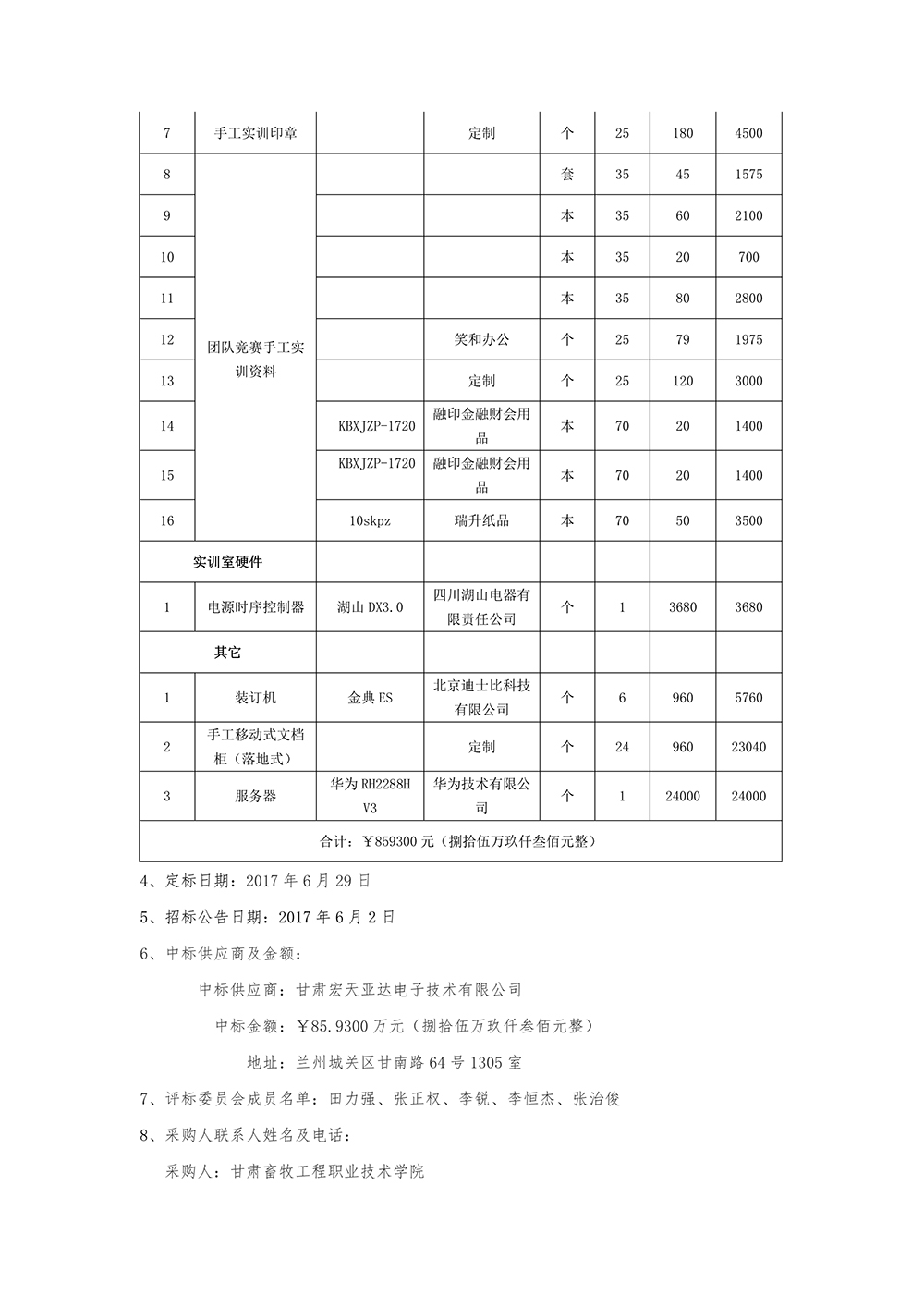 甘肃畜牧工程职业技术学院会计实训室建设采购项目中标公告
