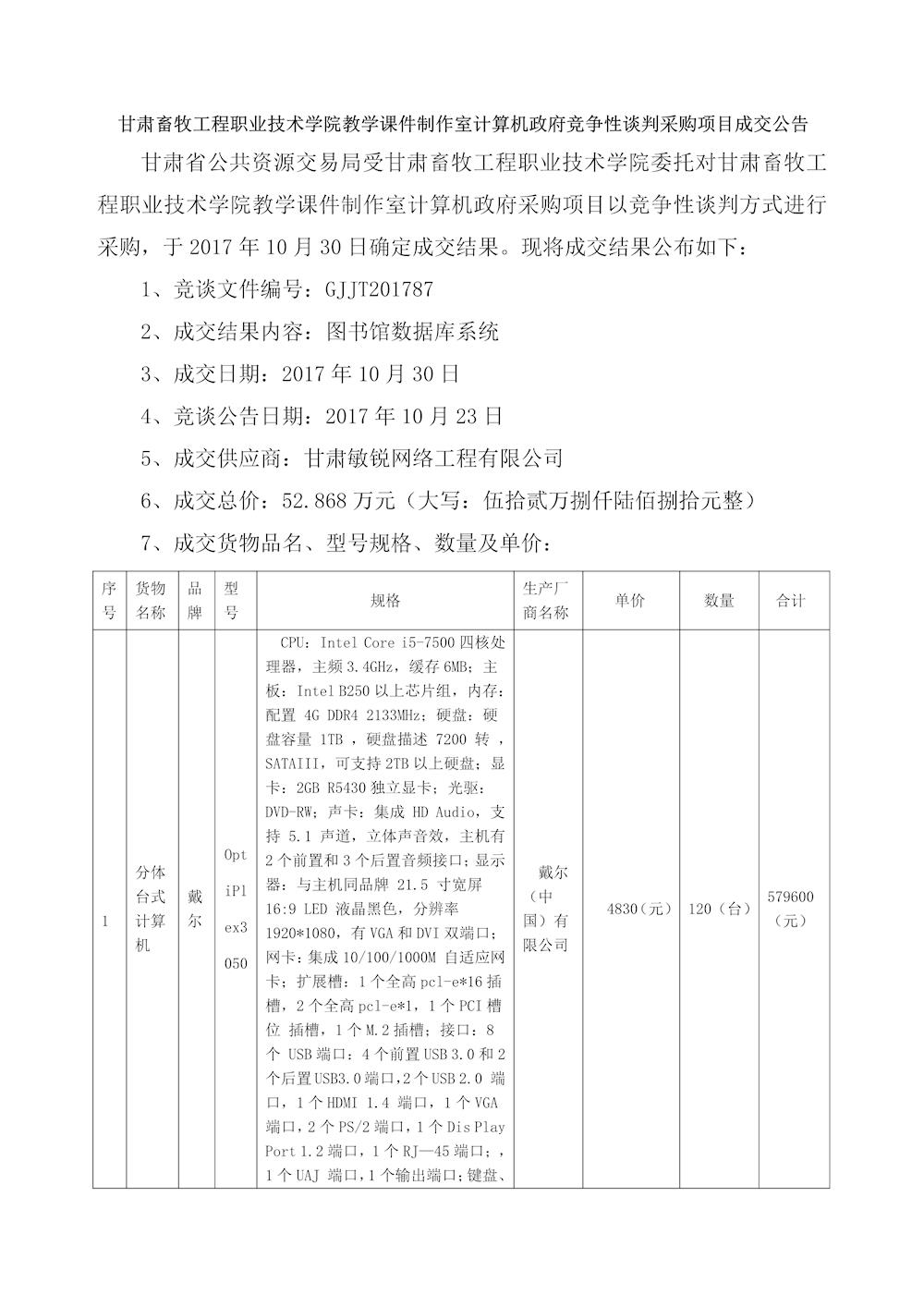 甘肃畜牧工程职业技术学院教学课件制作室计算机政府竞争性谈判采购项目成交公告 来源:国资基建处 发布时间:2018-11-19 11:39:00 浏览次数:次 【字体:小 大】 分享到: 【打印正文】 相关信息