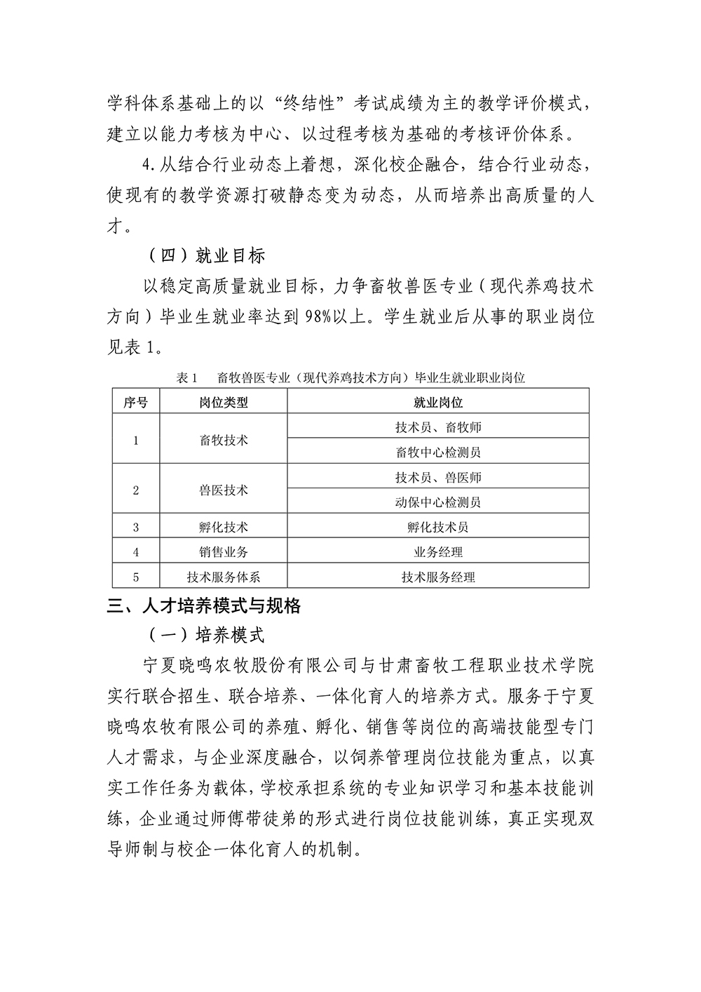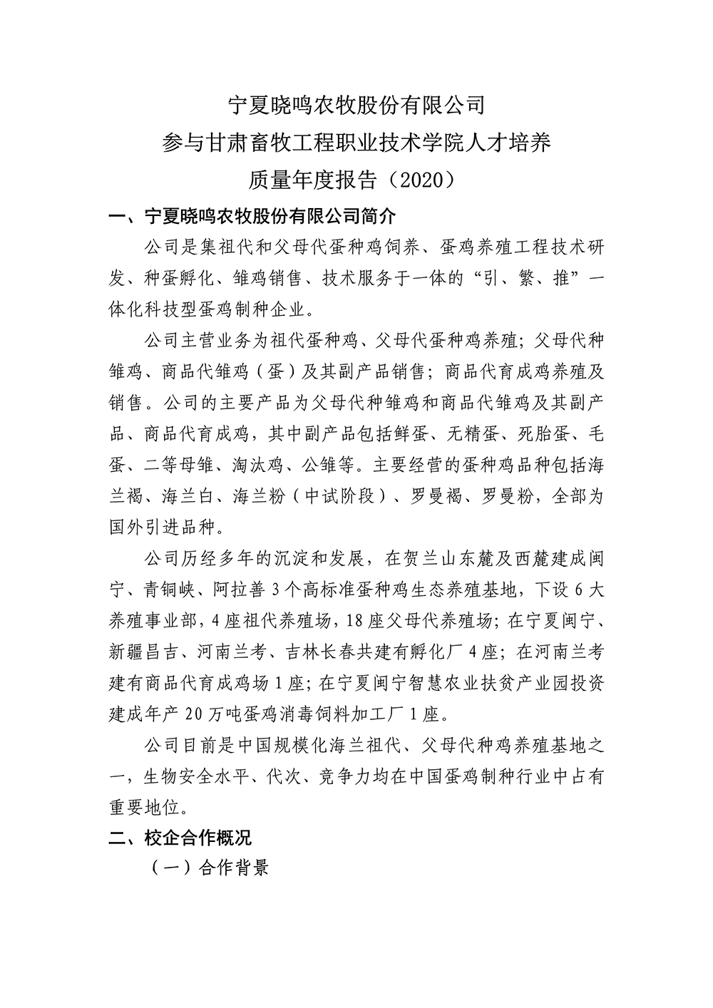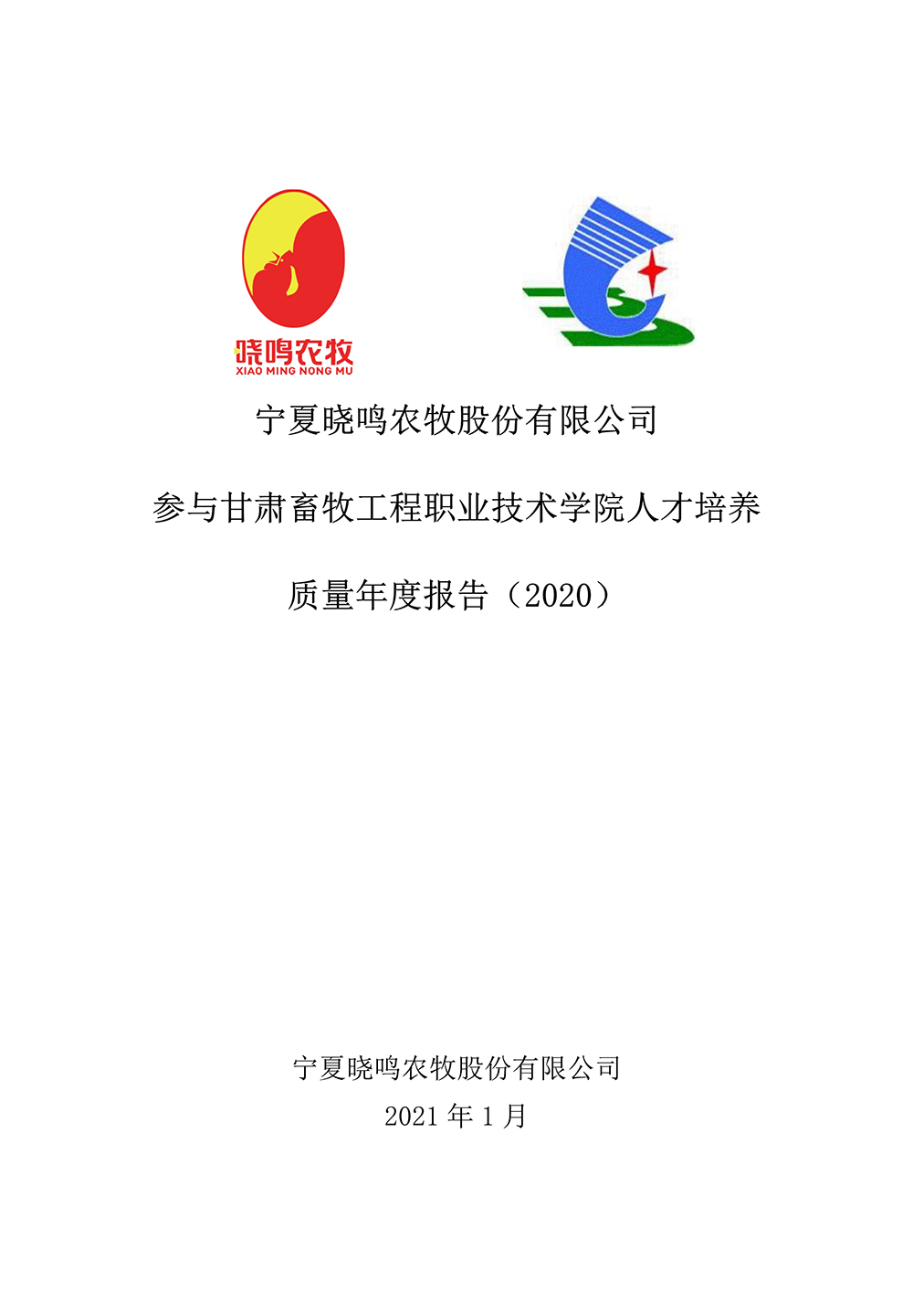 宁夏晓鸣农牧股份有限公司参与学校人才培养质量年度报告(2020)