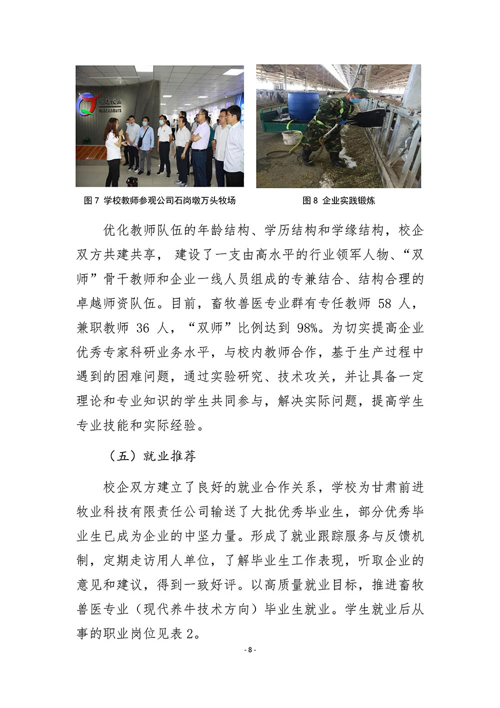 甘肃前进牧业科技有限责任公司参与高等职业教育人才培养质量年度报告(2022) 发布时间:2023-01-05 15:54:00 浏览次数:次 【字体:小 大】 终审:宣传部 分享到: 【打印正文】 相关信息
