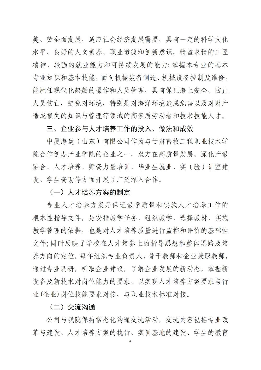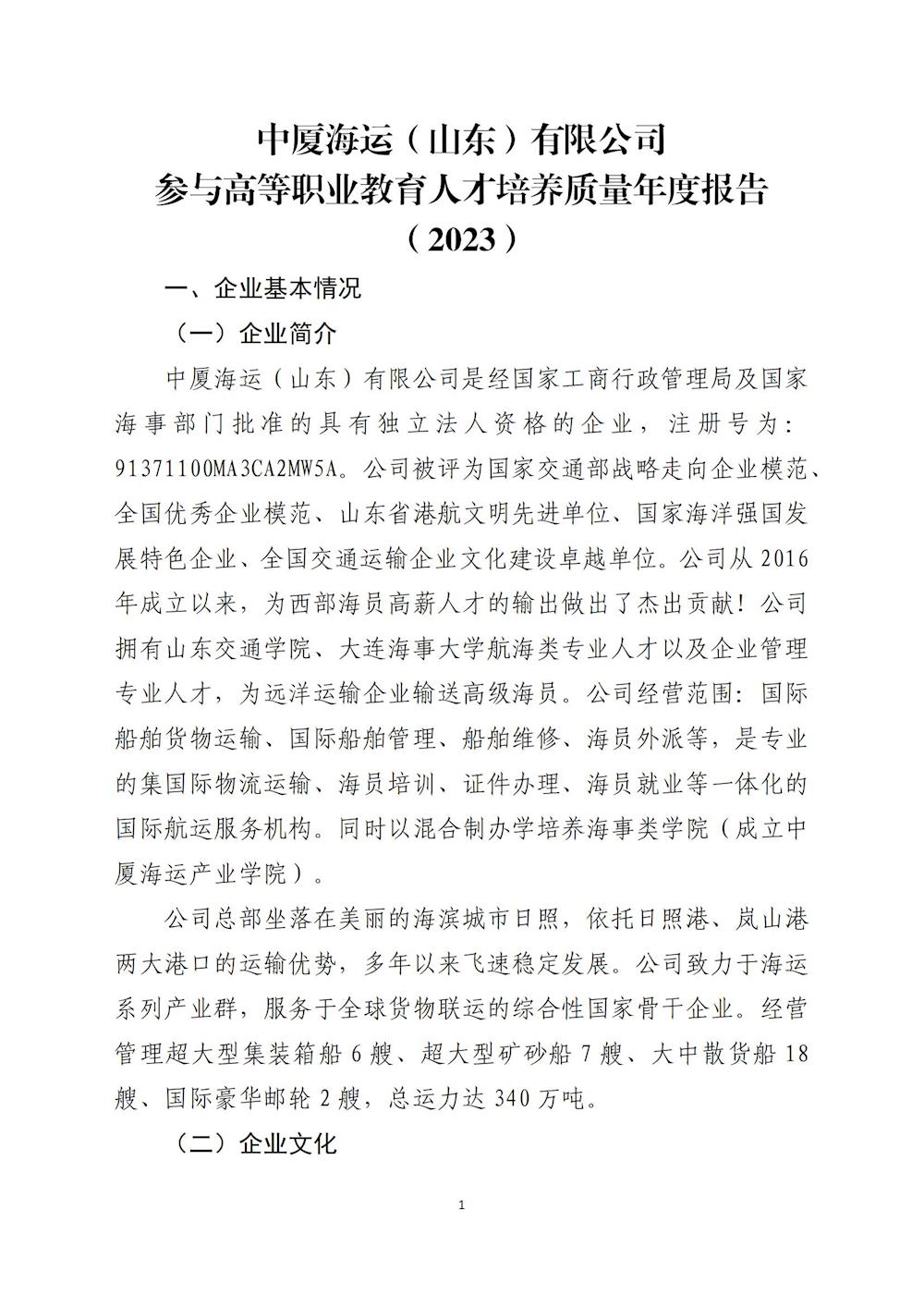 中厦海运(山东)有限公司参与高等职业教育人才培养质量年度报告(2023) 发布时间:2024-01-12 18:05:00 浏览次数:次 【字体:小 大】 终审:宣传部 分享到: 【打印正文】 相关信息