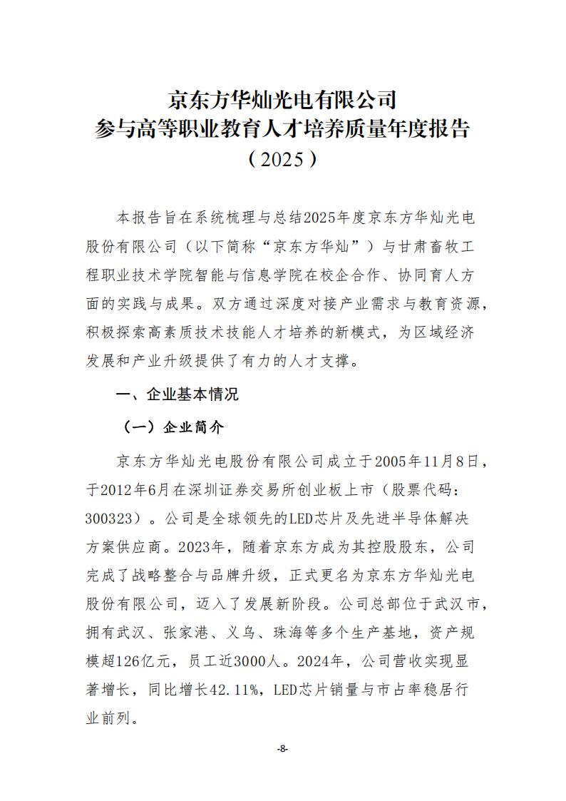 京东方华灿光电有限公司参与高等职业教育人才培养质量年度报告(2025)