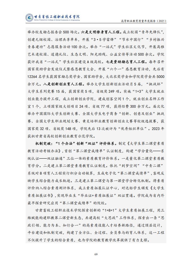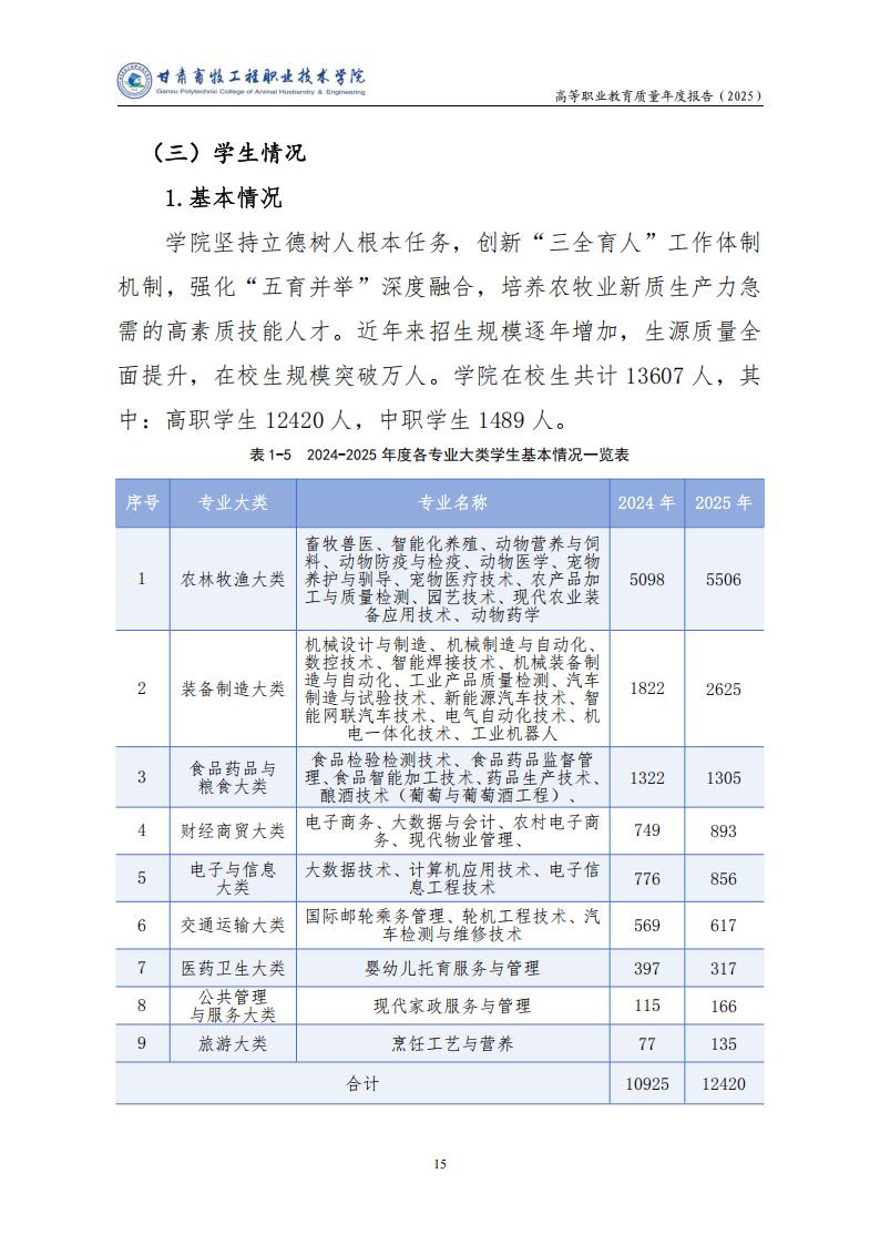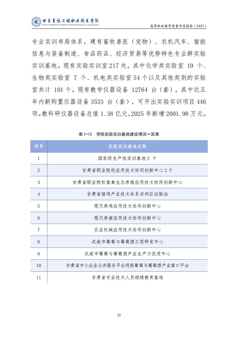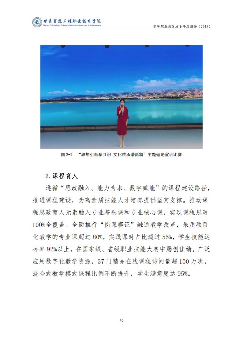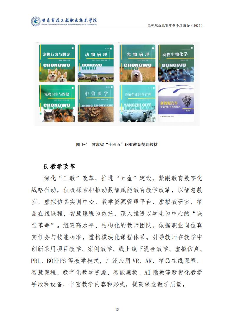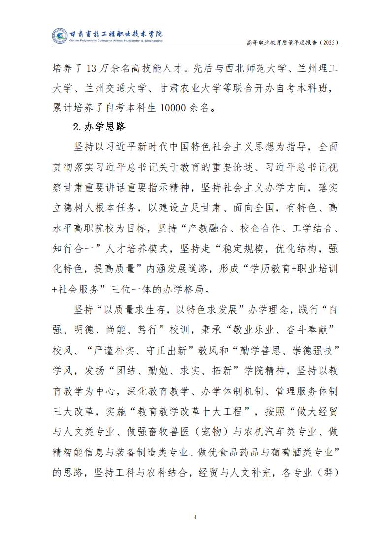甘肃畜牧工程职业技术学院高等职业教育质量年度报告(2025)