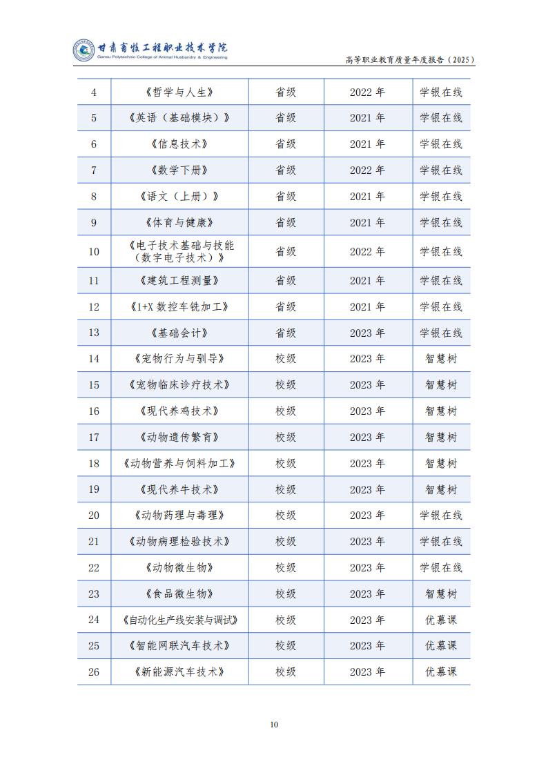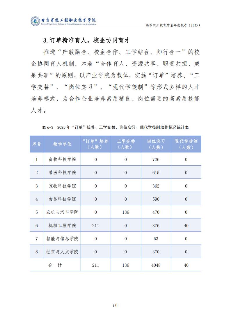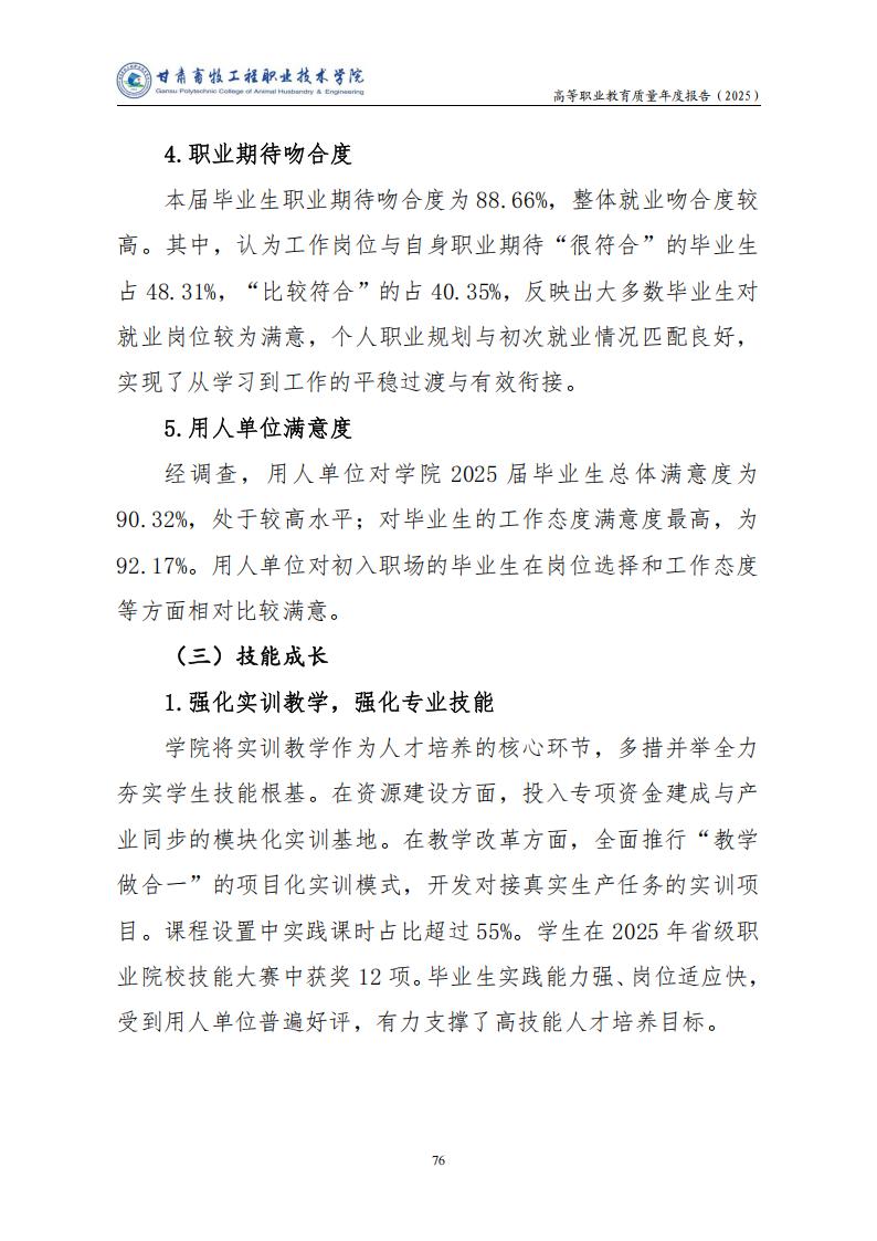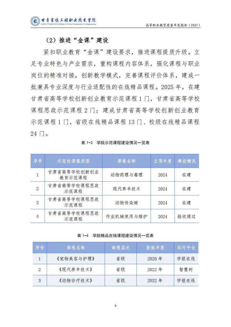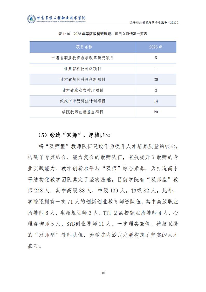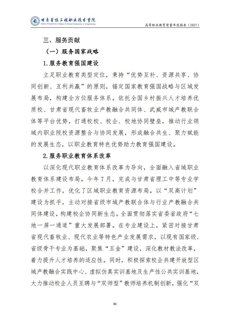 甘肃畜牧工程职业技术学院高等职业教育质量年度报告(2025)