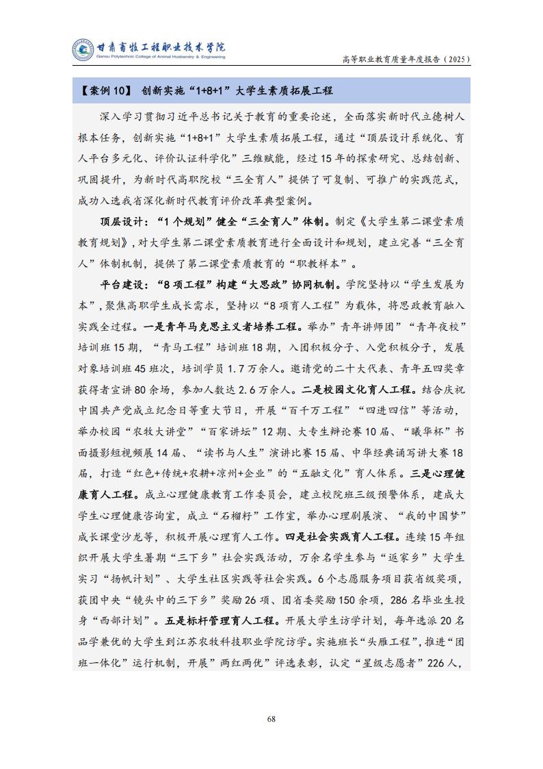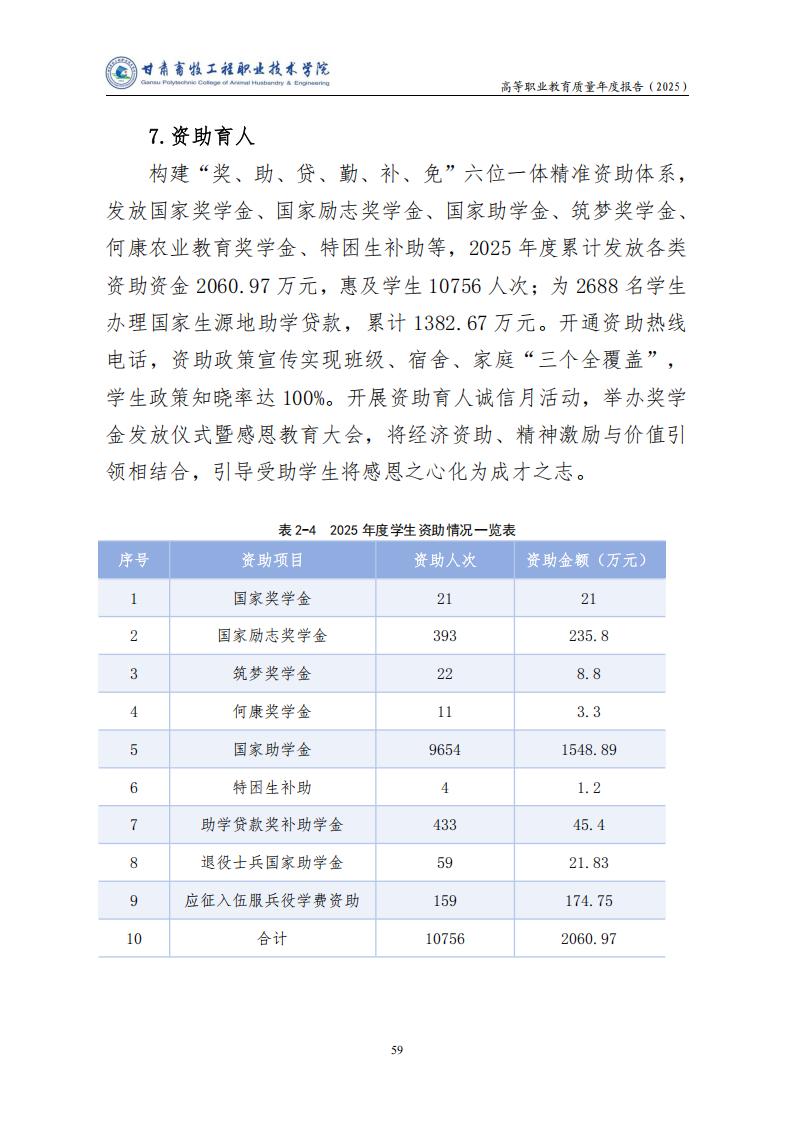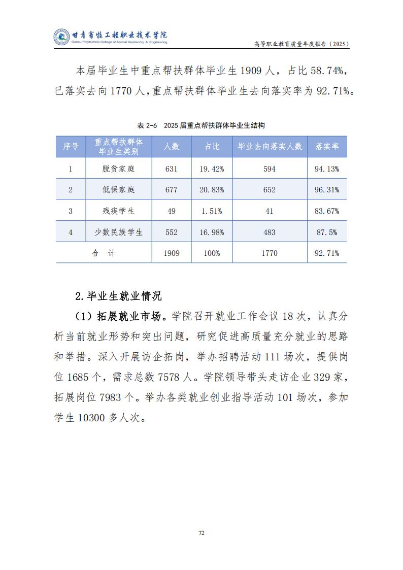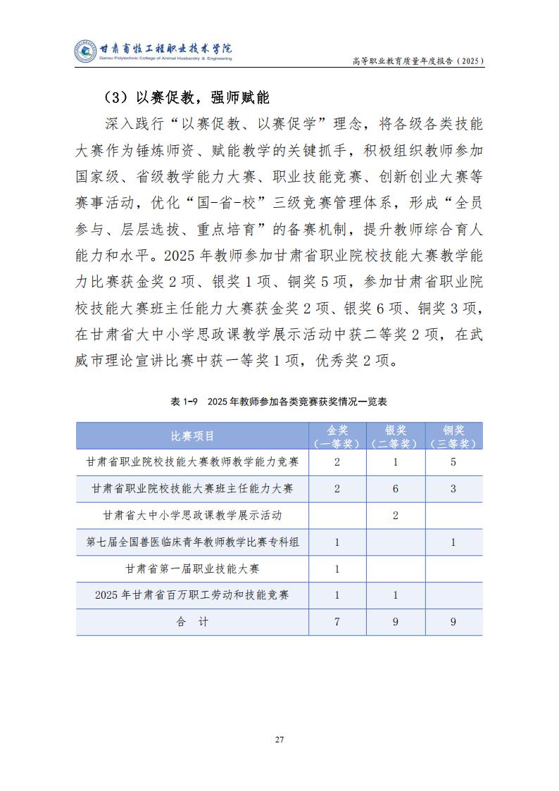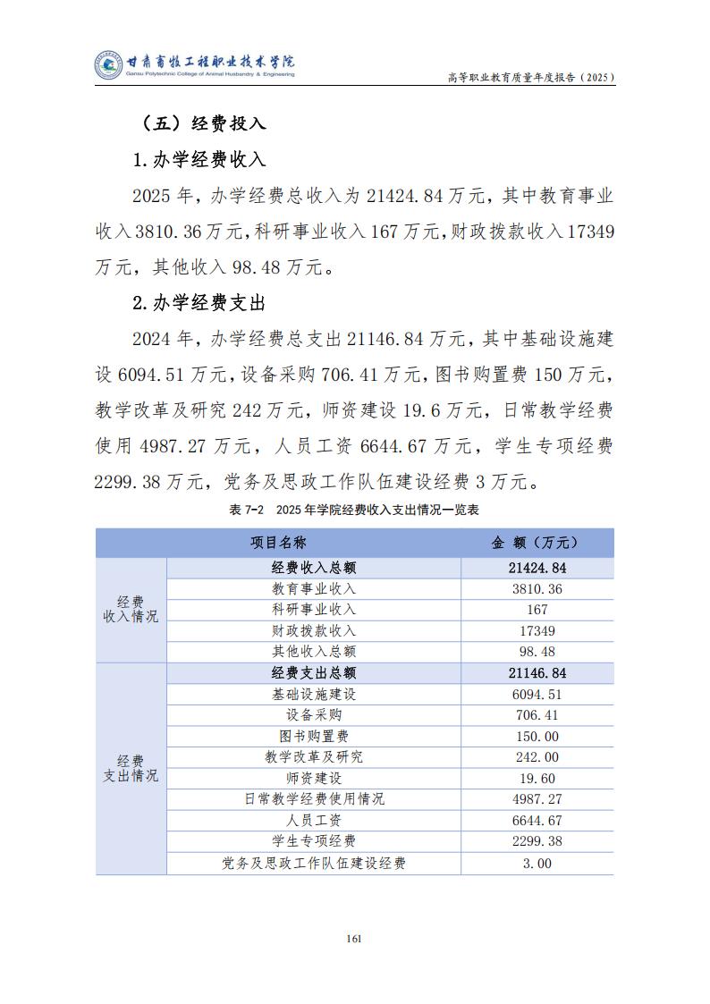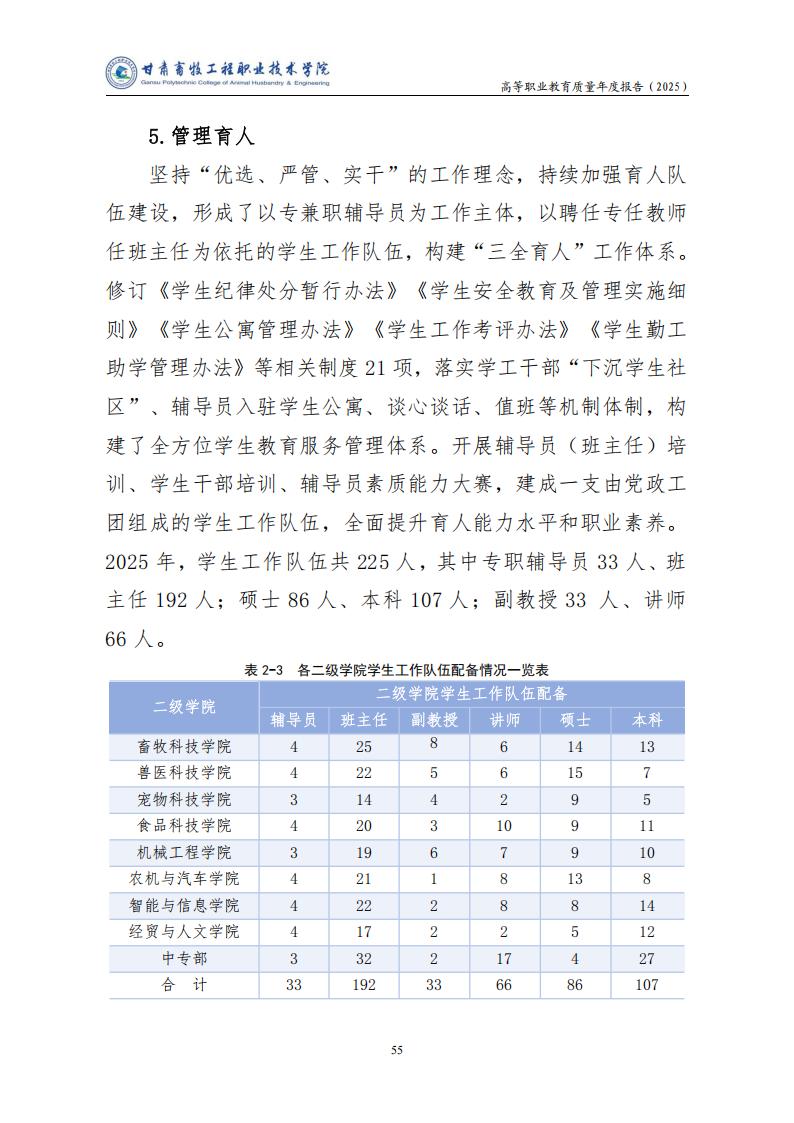 甘肃畜牧工程职业技术学院高等职业教育质量年度报告(2025)