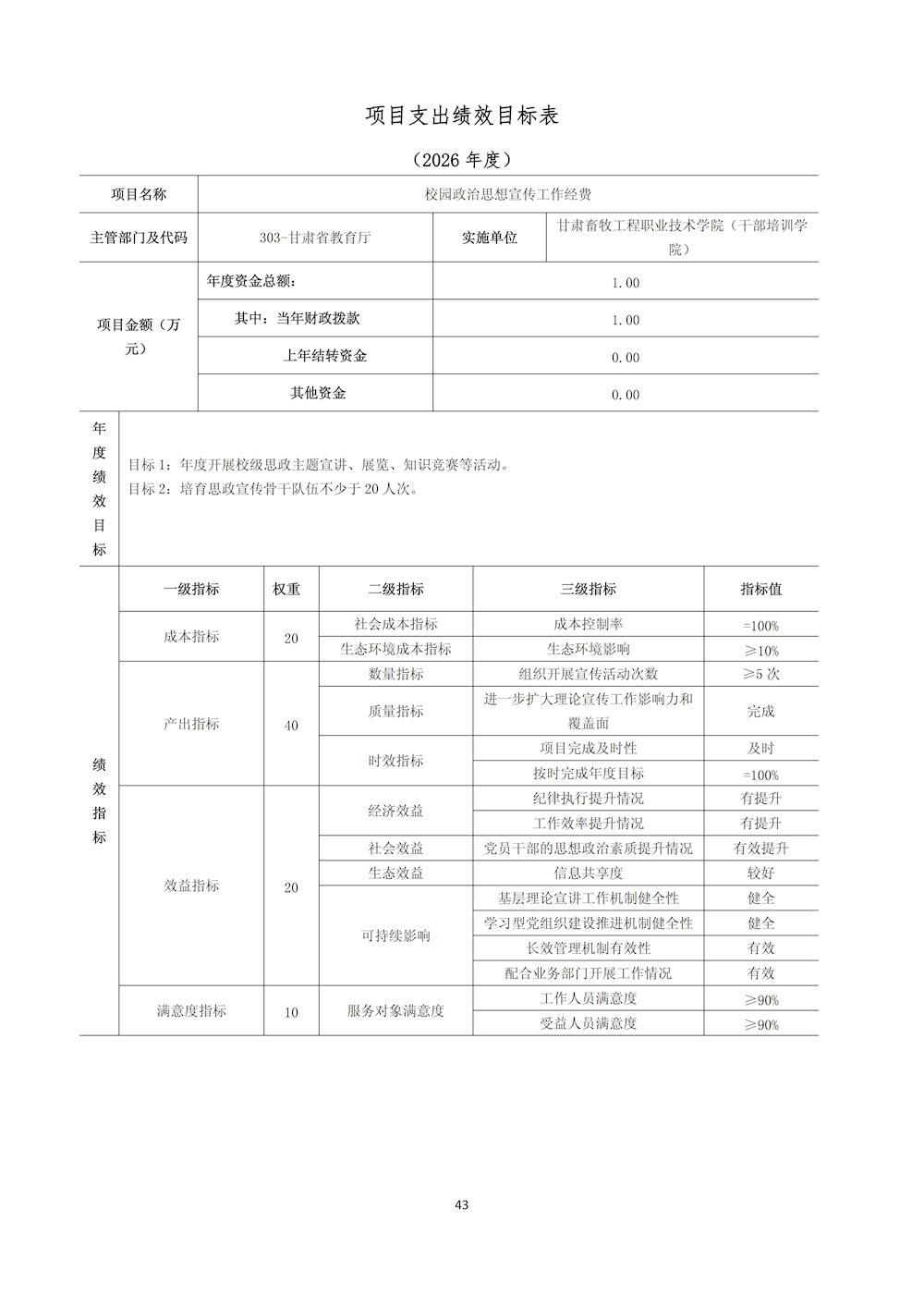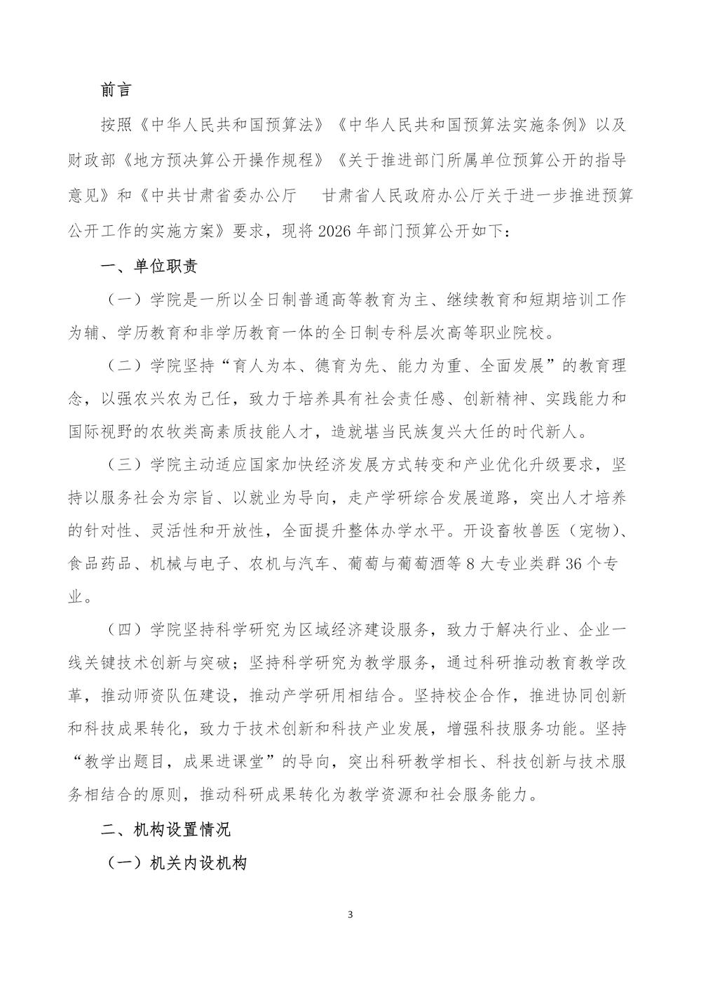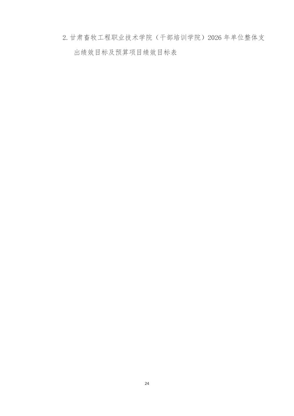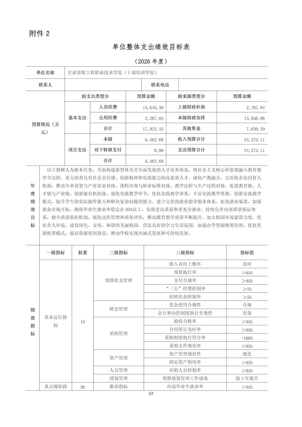 甘肃畜牧工程职业技术学院(干部培训学院)2026年单位预算公开情况说明