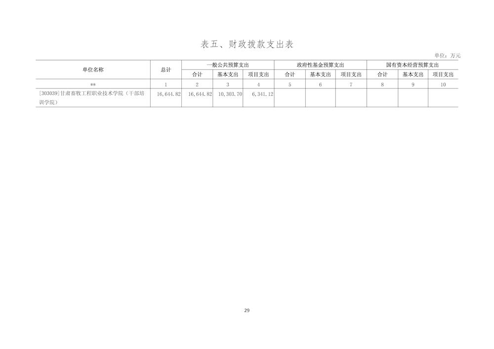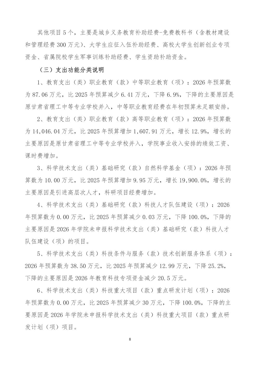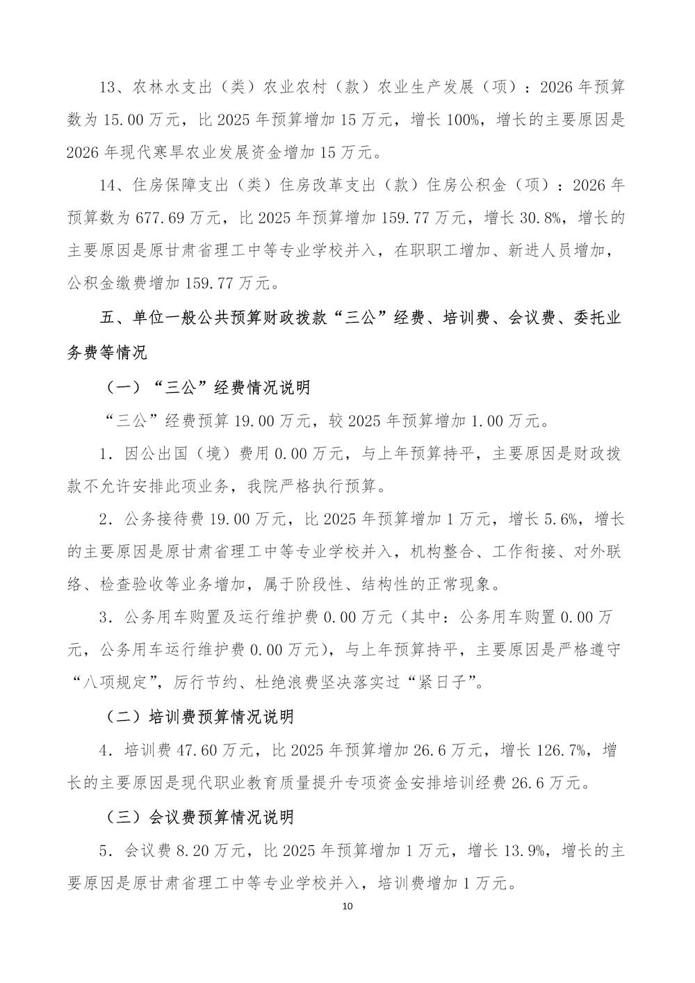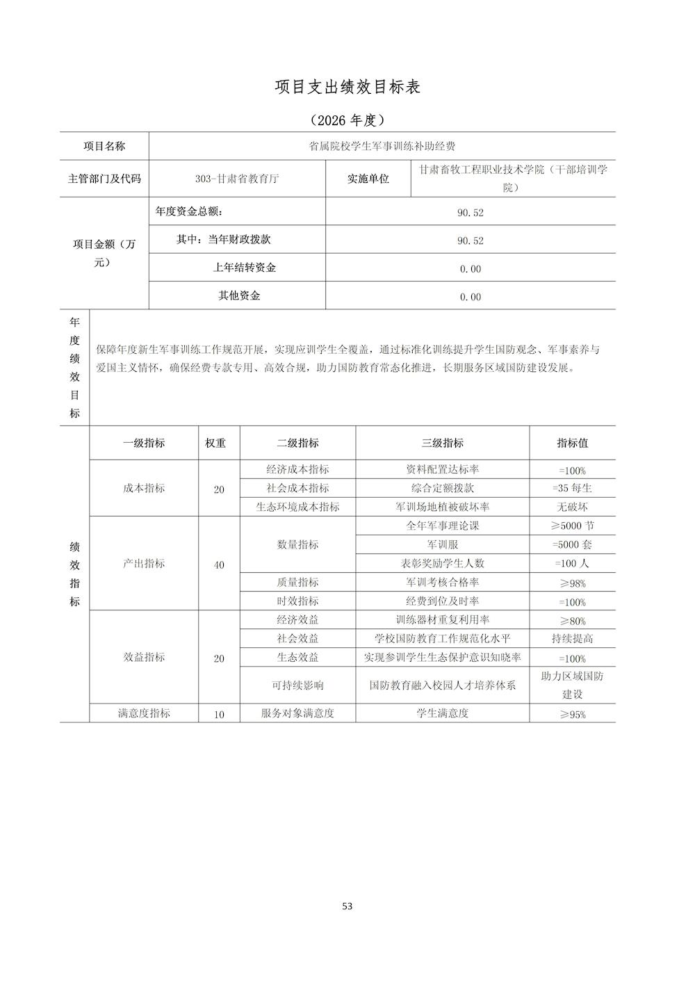 甘肃畜牧工程职业技术学院(干部培训学院)2026年单位预算公开情况说明