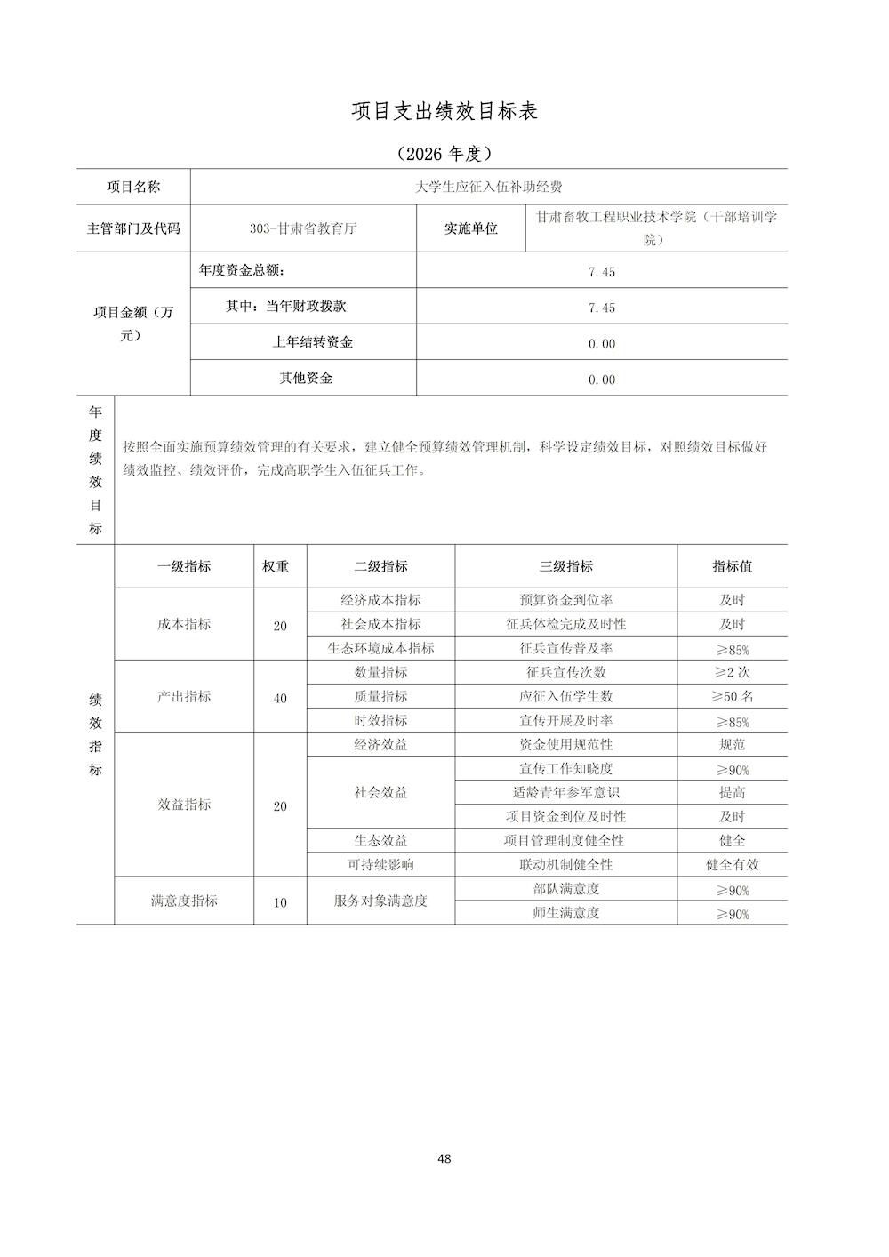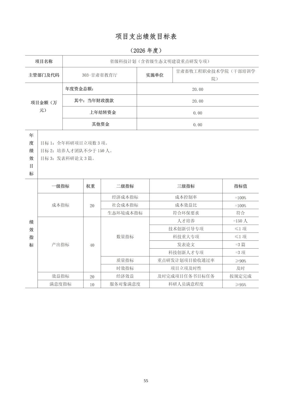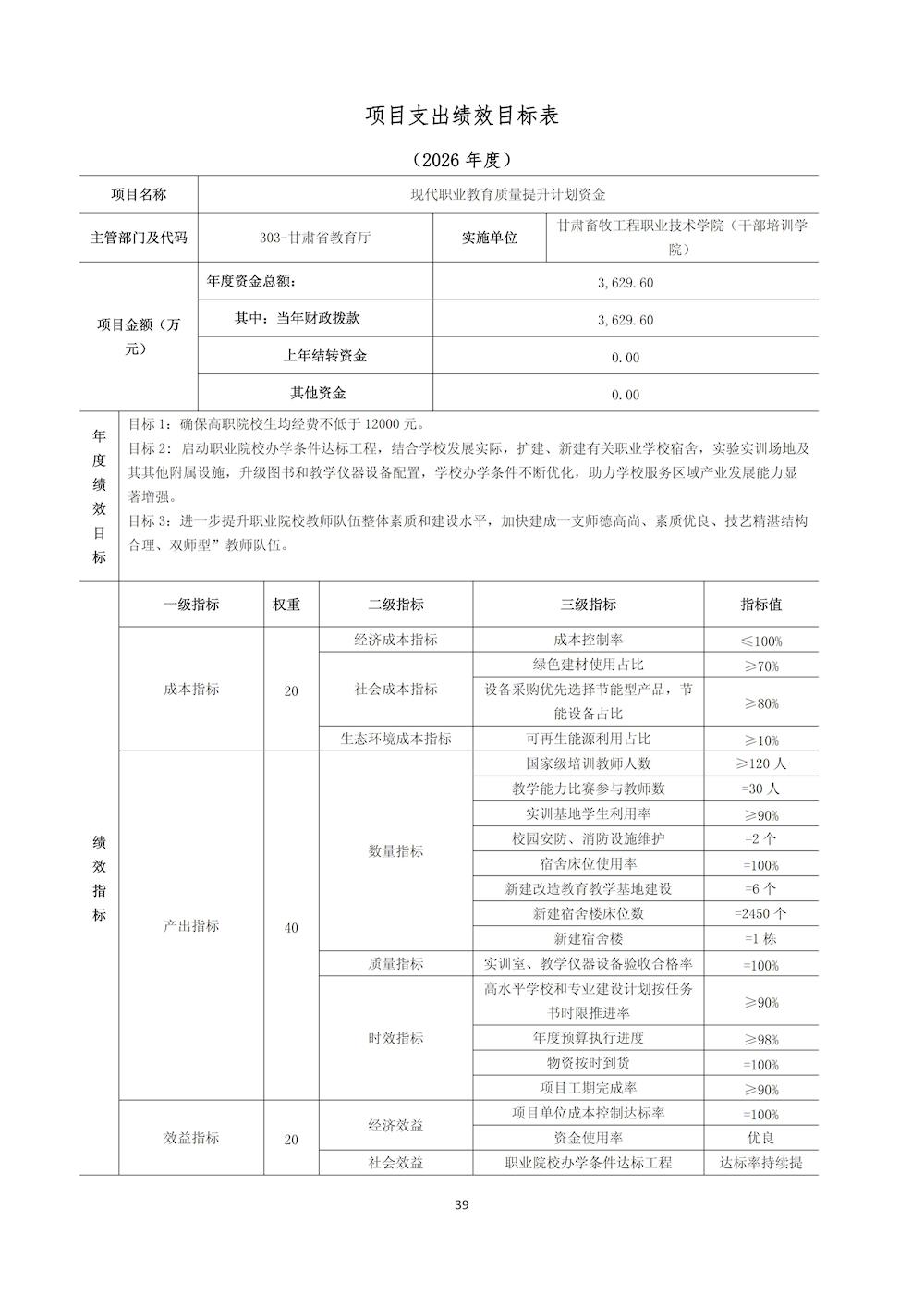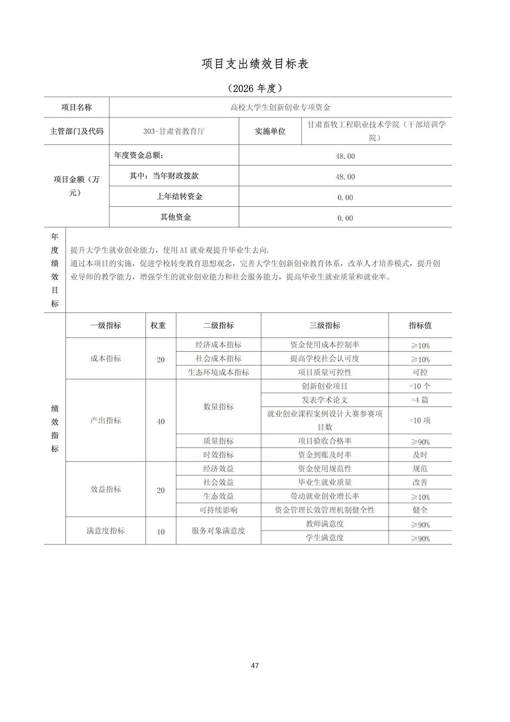 甘肃畜牧工程职业技术学院(干部培训学院)2026年单位预算公开情况说明