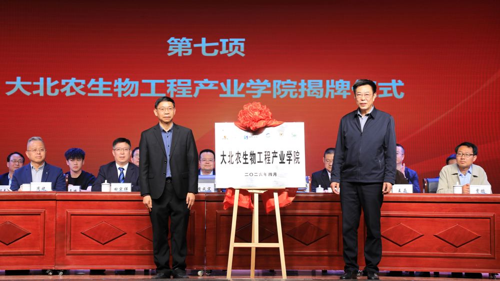 学院党委书记黄成定与大北农集团副总裁、甘肃大北农生物工程有限公司总经理林梅根共同为“大北农生物工程产业学院”揭牌。