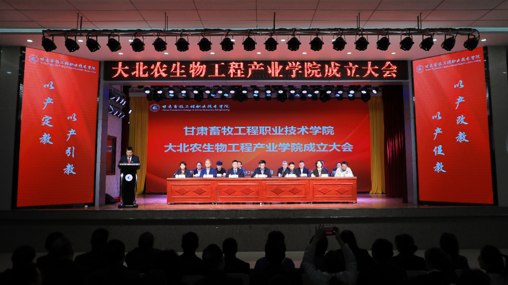 4月23日,甘肃畜牧工程职业技术学院大北农生物工程产业学院成立大会暨揭牌仪式在黄羊西校区大礼堂隆重举行。
